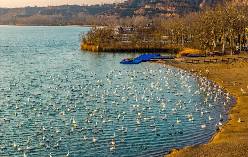 在冬日的清晨,芮城县圣天湖景区呈现出一幅动人的生态画卷。阳光洒满湖面,一群优雅的白天鹅轻轻摇曳,在晨光中展现着它们优美的身姿。得益于当地持续加强的生态保护措施,这片水域已成为这些候鸟理想的越冬栖息地。随着时间推移,越来越多的白天鹅选择在此安家过冬,与周围的自然景观共同构成了一幅和谐美丽的生态图景。