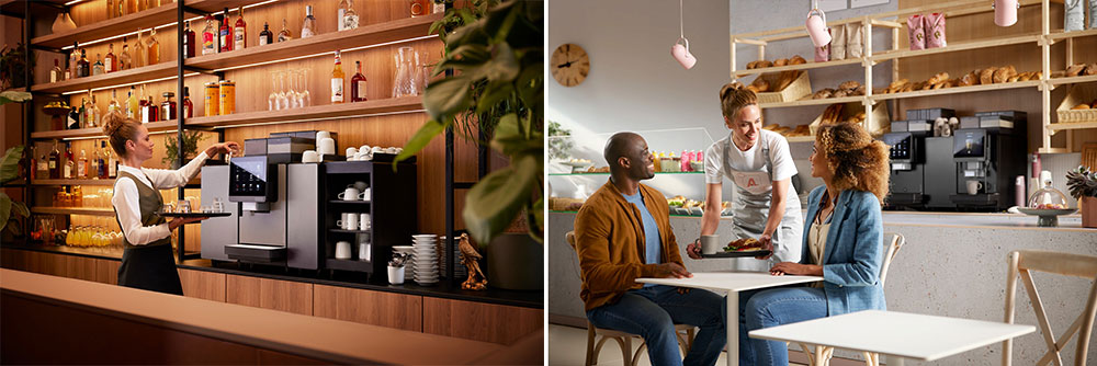 为进一步拓展饮品选择,新系列支持最多三组磨豆机与两组粉槽,同时还可选配 Flavor Station 风味糖浆机,提供最多六种糖浆,以满足消费者对风味咖啡与冷热特色饮品的需求。此外,IndividualMilk技术通过从容器到出杯的完全独立管路设计,实现鲜奶与植物基奶之间的切换,避免交叉污染,在保障风味纯净的同时兼顾各种饮品需求。