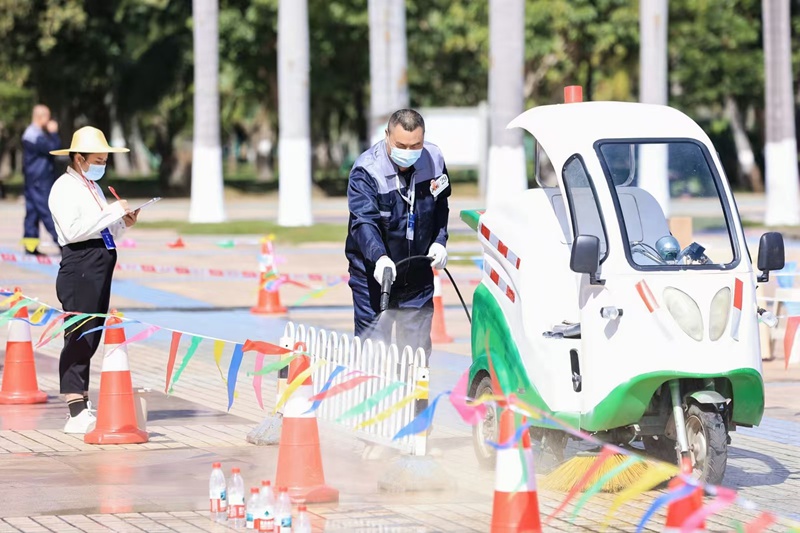 11月28日,海口世纪大桥下的喷水池广场人头攒动,热闹非凡。一场名为“建功自贸港・劳动筑梦想・环卫筑匠心”的海南省环卫行业劳动和技能竞赛在此拉开帷幕。来自全省各市县的145名环卫工作者齐聚一堂,在道路清扫、公厕保洁、“小型勤务兵”操作及垃圾清运车驾驶四大项目中展开激烈角逐。