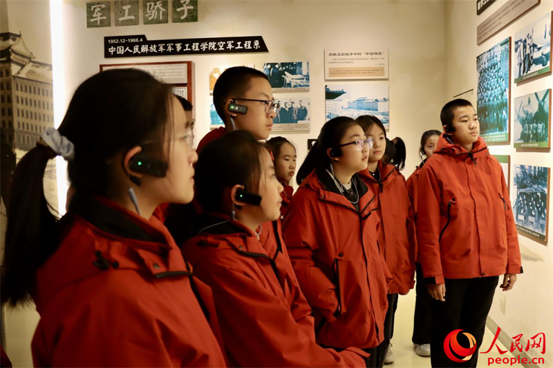 学生们在参观校史馆时驻足观看展品。图片来源:人民网
