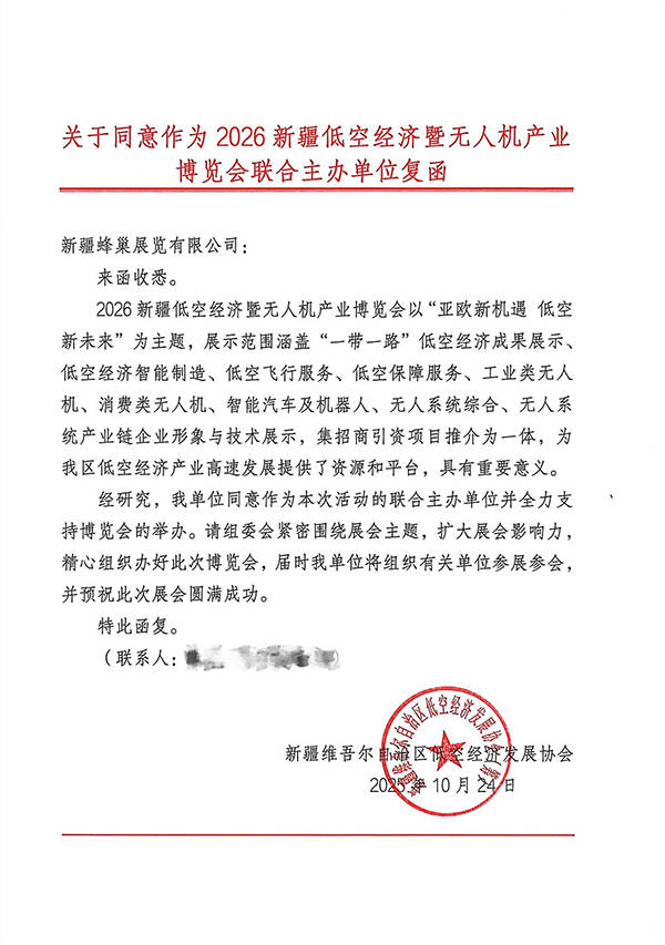 由新疆低空经济发展协会主办,新疆蜂巢展览有限公司承办的2026新疆国际低空经济暨无人机产业博览会2026 年 5 月12-14日,在新疆国际会展中心盛大开幕。本届展会展览规模达30000+平方米,预计吸引参展企业300+家,以“亚欧新机遇 低空新未来”为主题,汇聚全球低空产业前沿技术与装备,链接丝路市场,为从业者、投资者、研究者搭建一站式交流合作平台,助力新疆在低空经济领域抢占先机,也为 “一带一路” 沿线低空经济发展注入新活力。