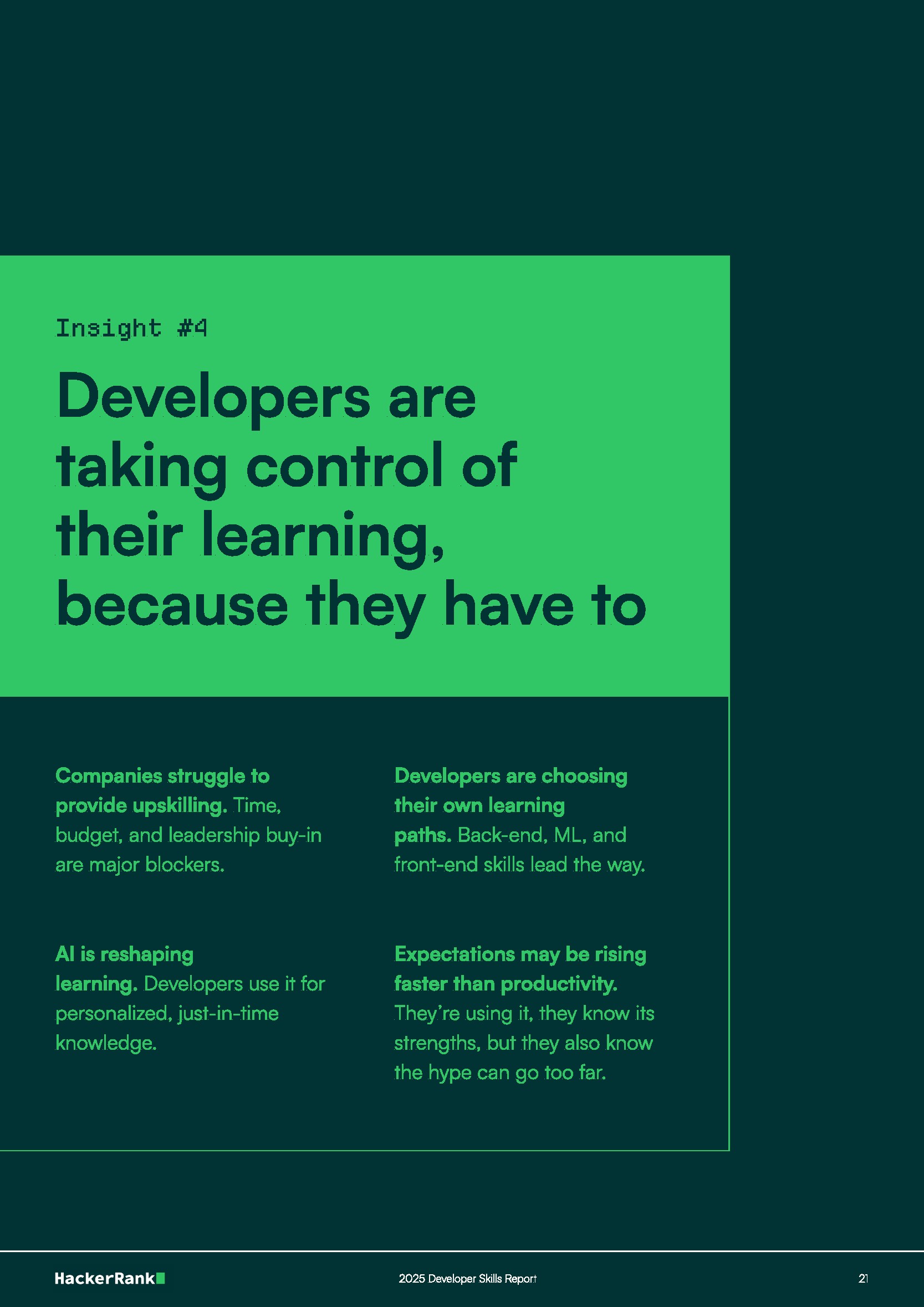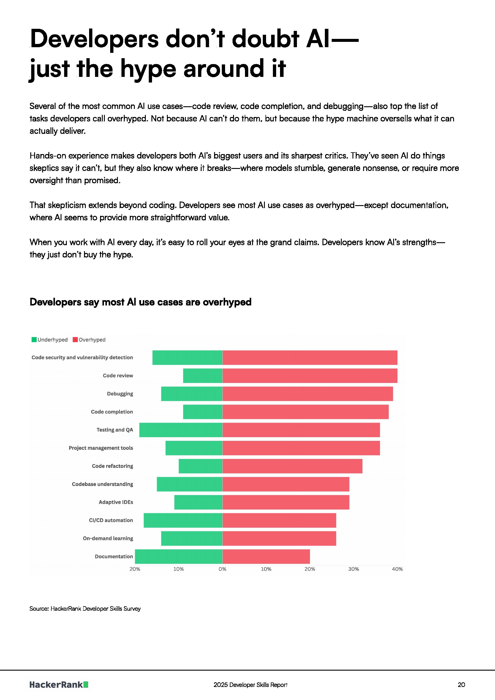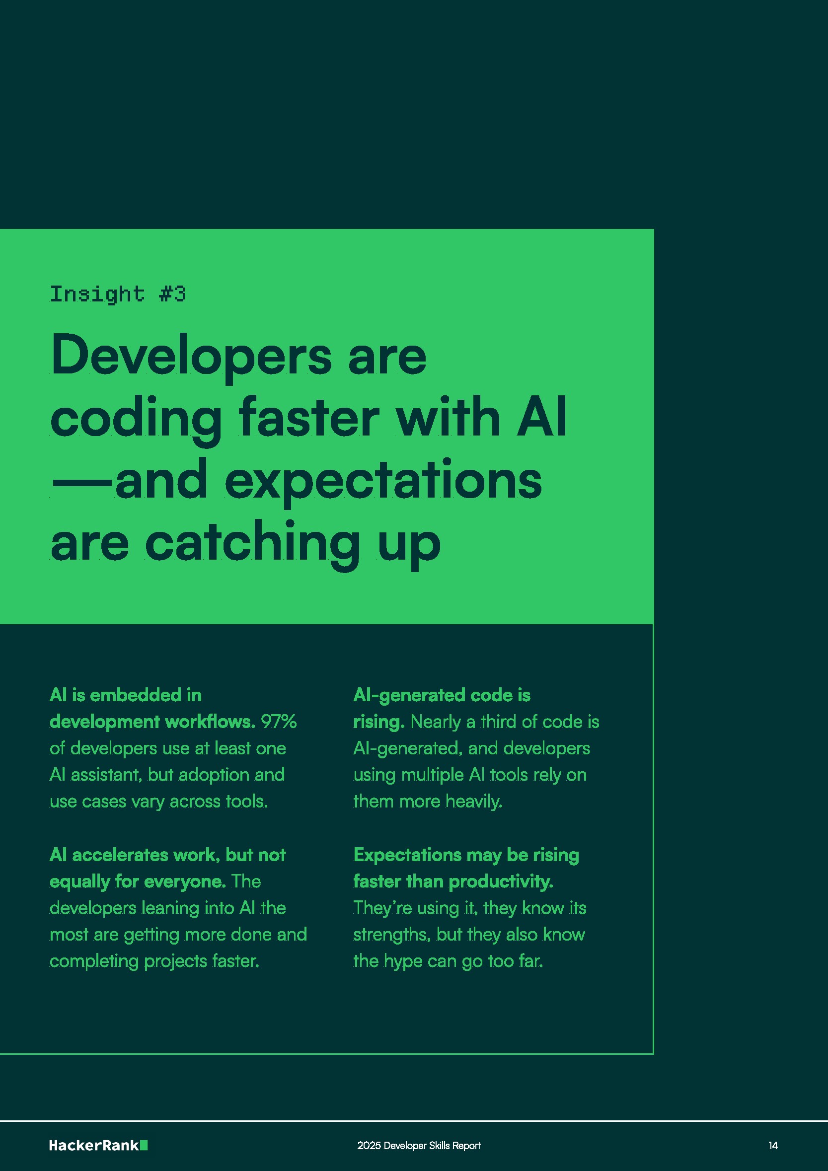 HackerRank发布了“2025年开发人员技能报告”。HackerRank 建立在一个简单的理念之上:技能应比背景更重要。其帮助公司基于真实能力而非简历关键词来招聘和发展开发人才,并支持一个拥有2600多万开发者的社区追求他们的全部潜力。