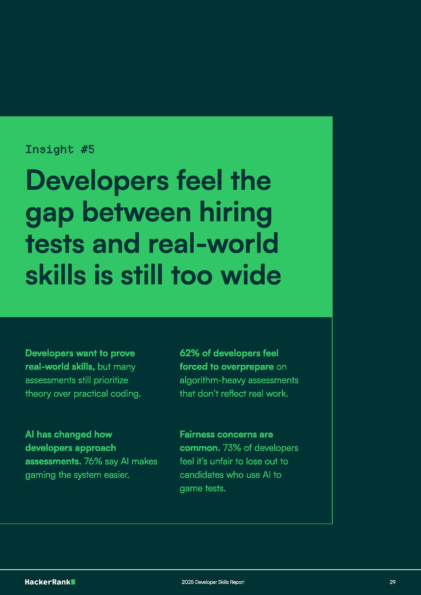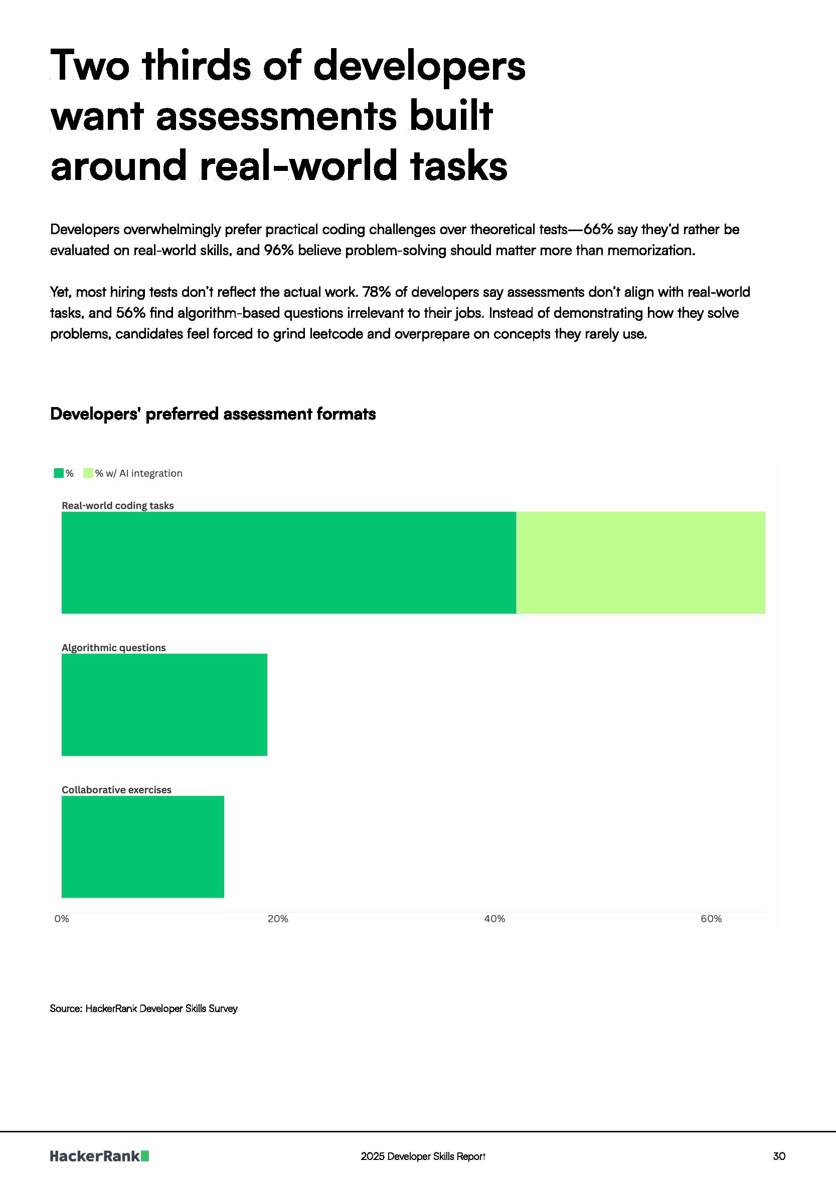 太多的招聘测试不能反映实际工作。66%的开发者更喜欢实际的编码挑战,但过时的算法测试仍然存在。