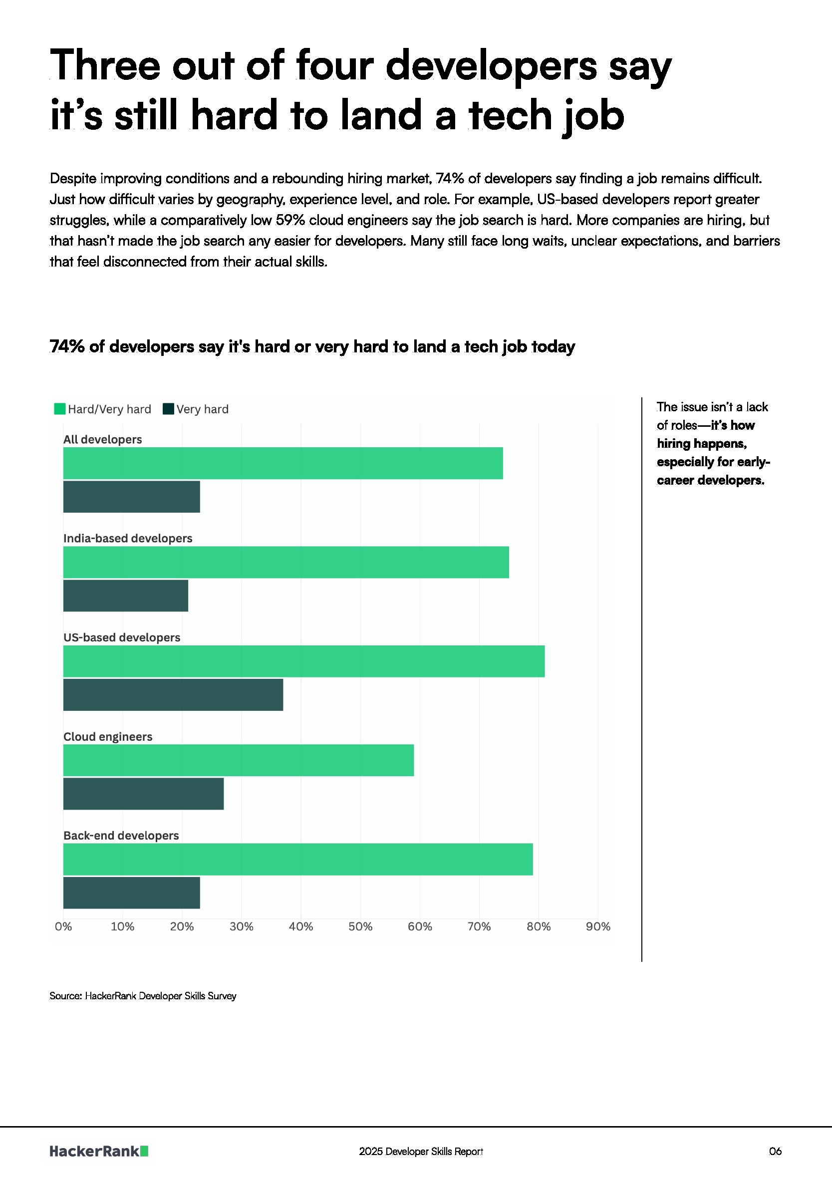 招聘在增加,但74%的开发者仍然难以找到工作。这种脱节不在于需求;而在于公司如何招聘、评估和留住人才。