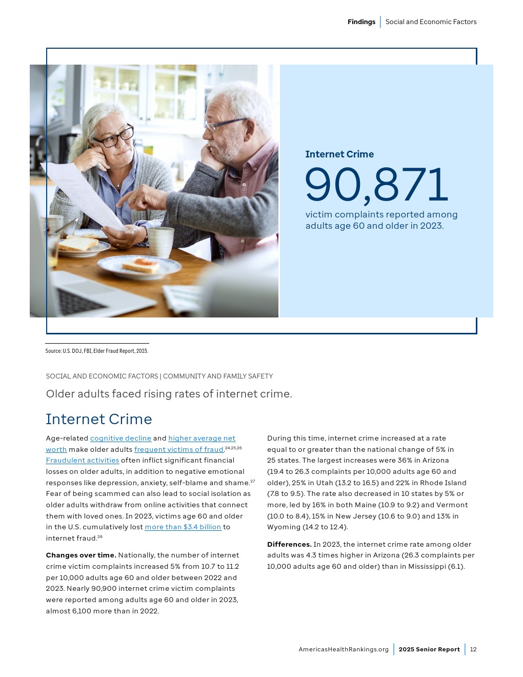 过去二十年间,美国老年人药物过量致死人数持续上升。药物滥用对老年人危害尤甚,因为年龄增长导致的肝脏功能变化会降低药物代谢能力,且大多数老年人需服用一种或多种处方药。他们还可能服用非处方药和膳食草本补充剂,这会进一步加剧药物相互作用,导致药物性死亡。