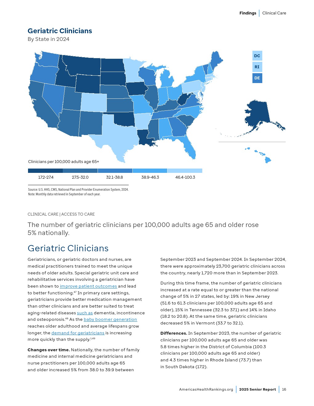 哥伦比亚特区(每10万65岁及以上人口98.9例)是南达科他州(4.1例)的24.1倍