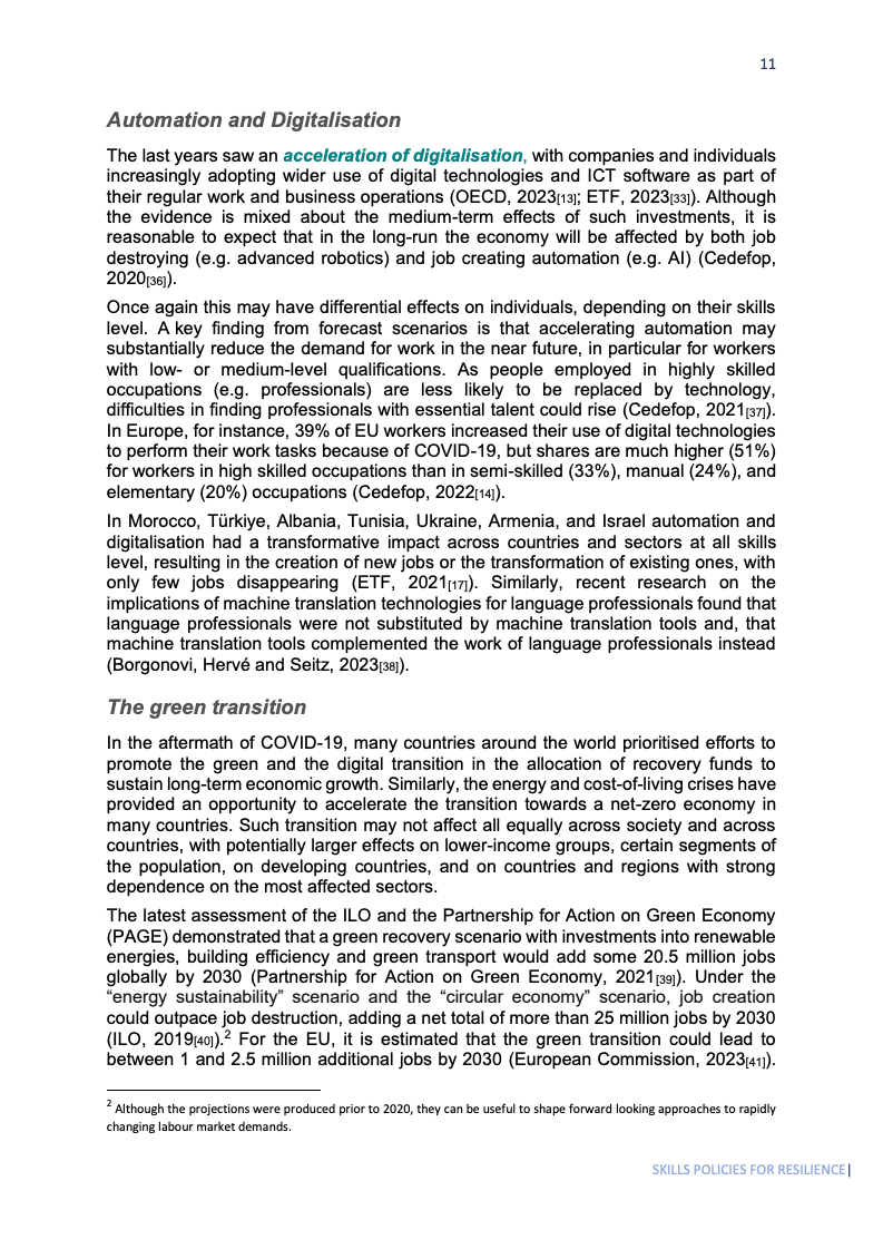 展望未来,全球劳动力市场将持续经历由数字与绿色转型驱动的深层变革。政策制定者需持续加大对韧性技能的战略性投资,尤其关注弱势群体,以弥合新型数字与绿色鸿沟。构建数据驱动的技能情报系统,结合灵活的个体学习账户和微证书,将是推动劳动力从被动应对危机转向主动塑造未来,实现更具包容性经济增长的关键。