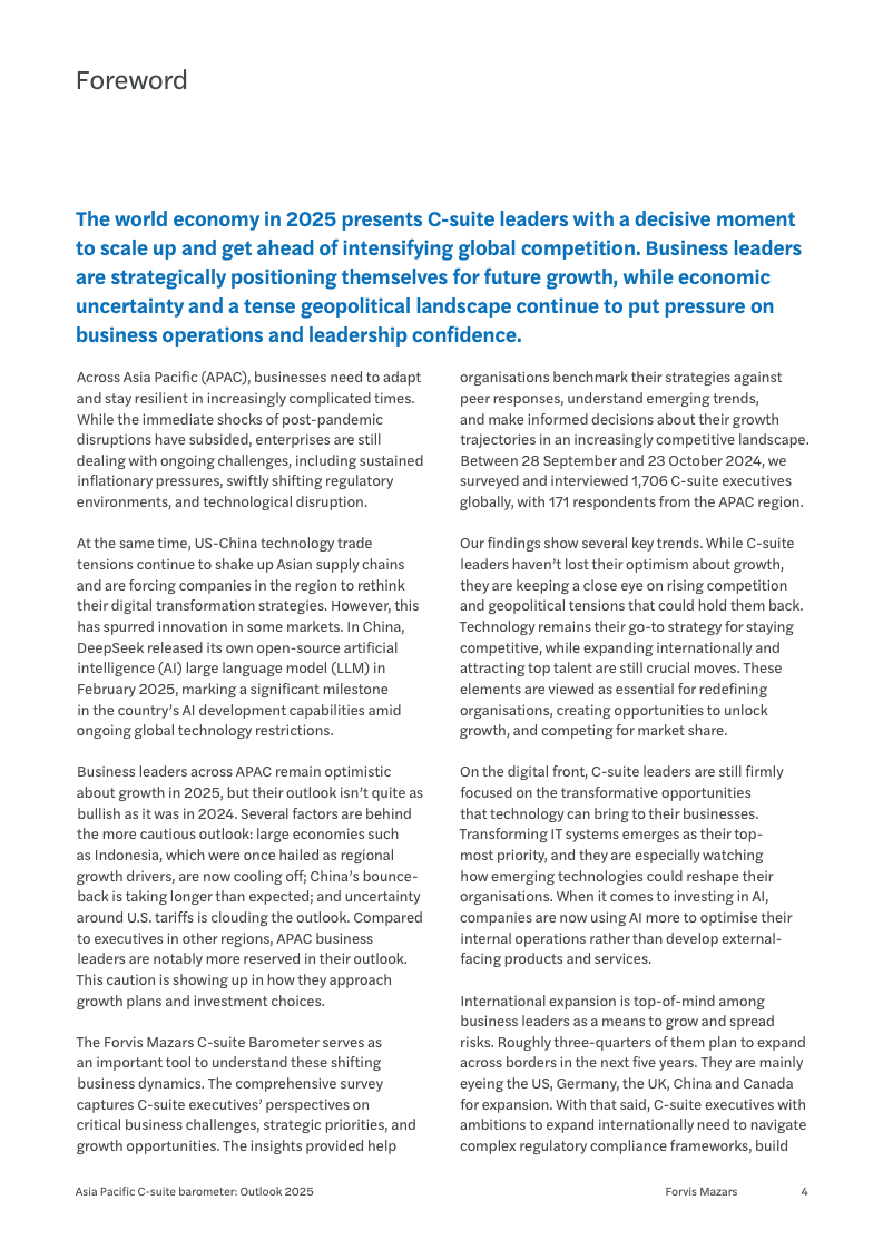 综合来看,2025年的亚太商界正从高速扩张的乐观主义转向更为务实的韧性增长模式。企业决策者们正在地缘政治、技术变革和经济周期的多重变量中寻求平衡。他们一方面通过技术革新和供应链重塑来巩固核心业务,另一方面则通过开拓新市场和产品线来捕捉增长机会。这种在谨慎中求进取,在挑战中觅机遇的战略姿态,将定义未来一年亚太地区的商业格局。