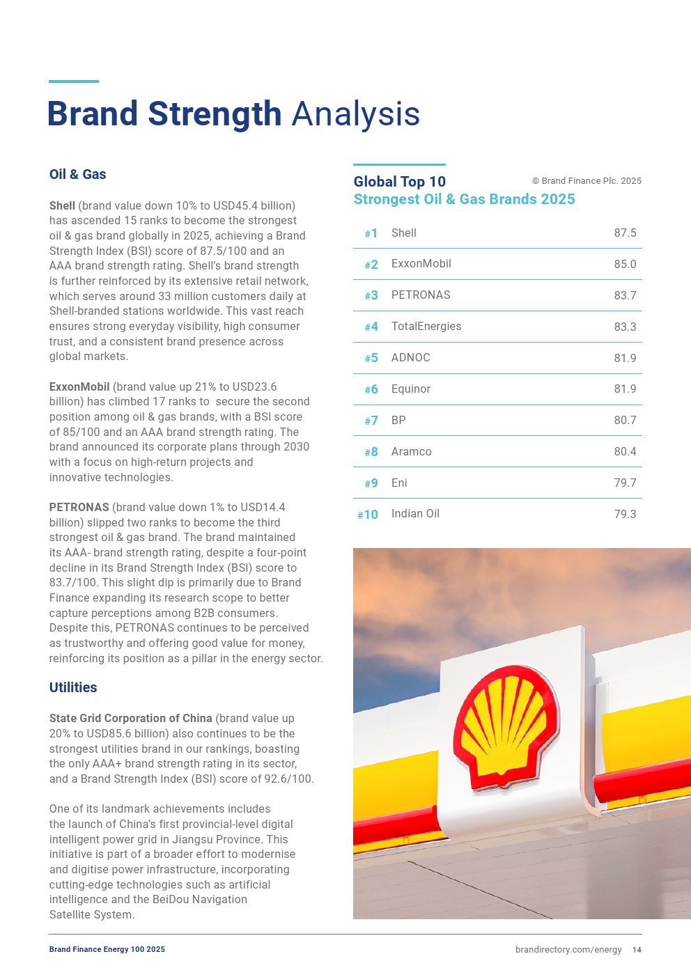 Brand Finance发布了“2025年能源品牌100强”。壳牌(品牌价值下降10%,达到454亿美元)连续第11年保持全球最具价值石油与天然气品牌地位。