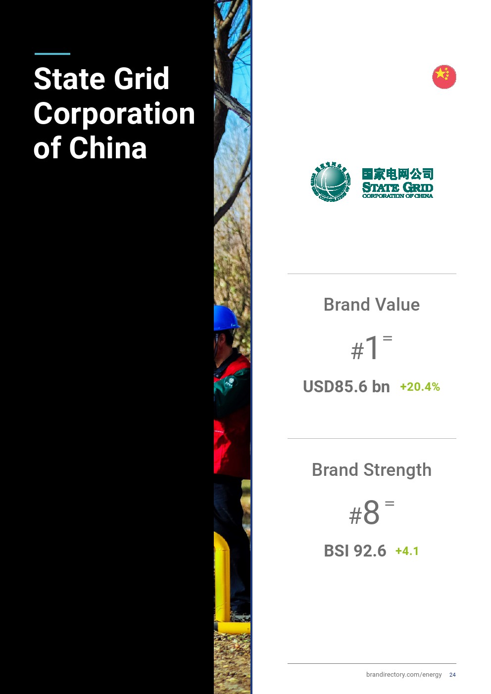 中国国家电网(品牌价值增长20%,达到856亿美元)连续第八年蝉联全球最具价值公用事业品牌。