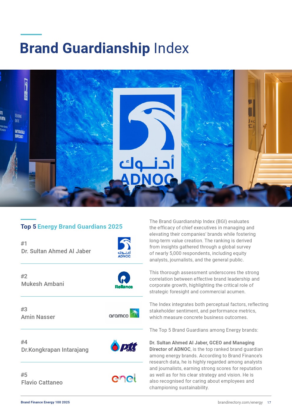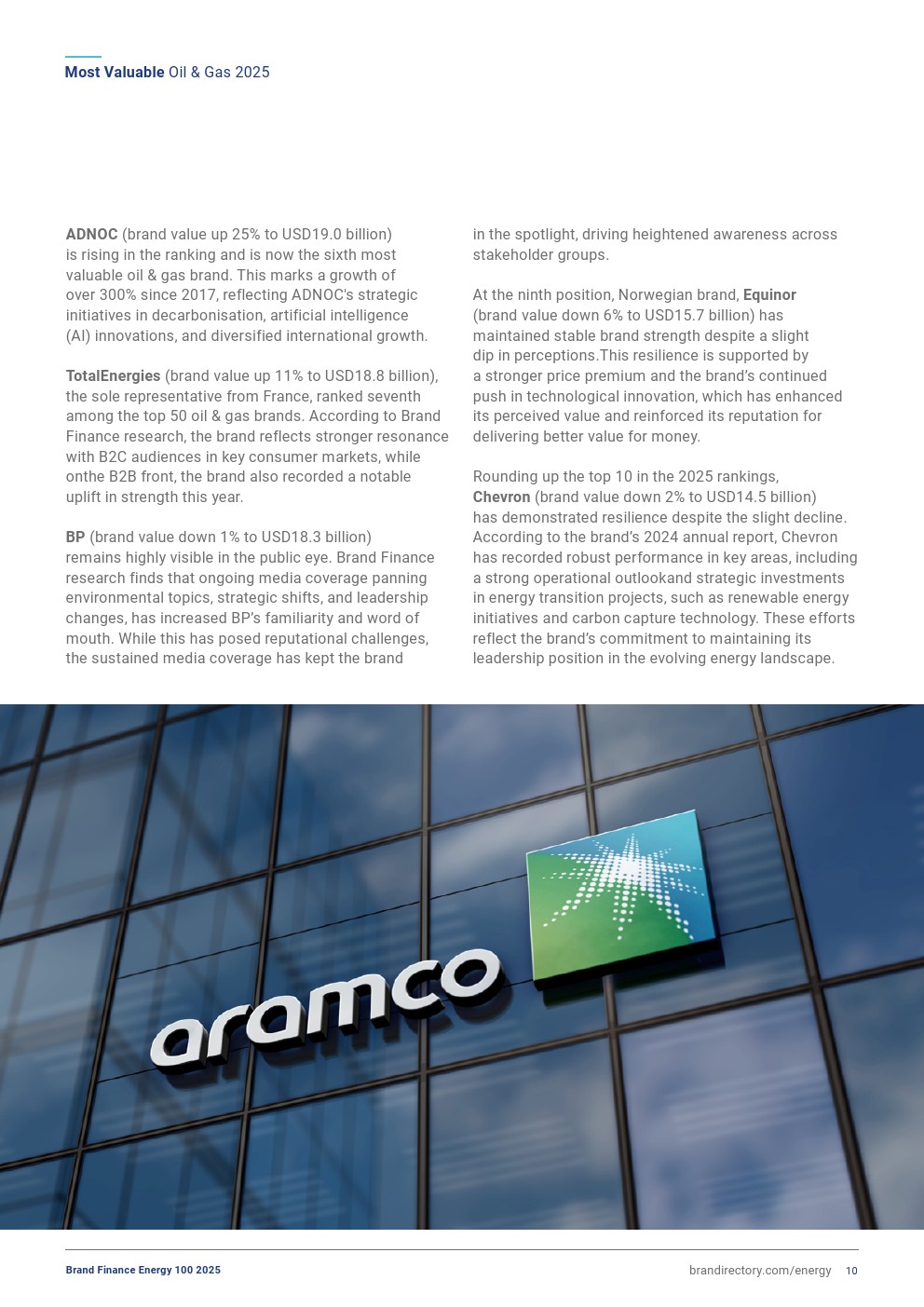 阿布扎比国家石油公司(ADNOC,品牌价值增长25%,达到190亿美元)排名上升,现为全球第六大油气品牌。