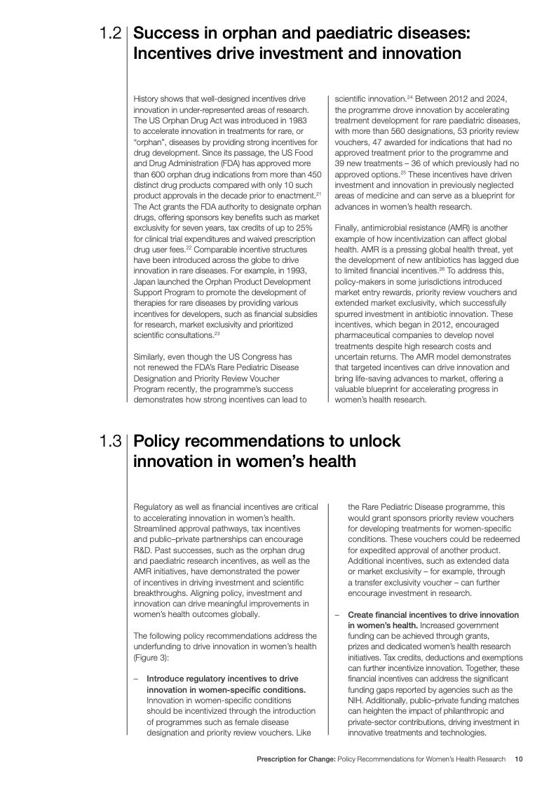这些政策旨在通过监管改革、财政激励、数据标准化及研究者与患者教育等方式,推动女性健康研究的进步,最终改善全球女性的健康福祉。