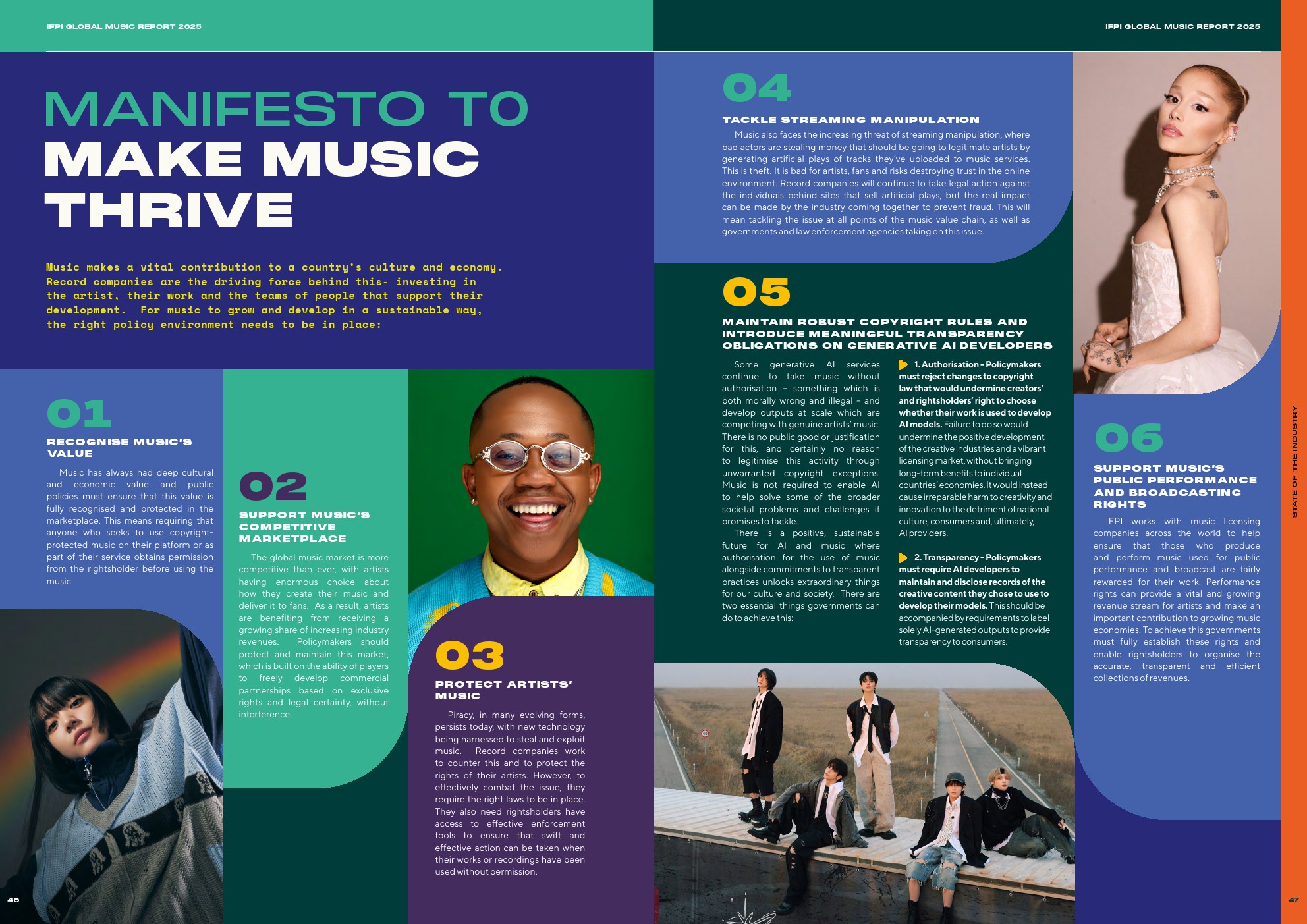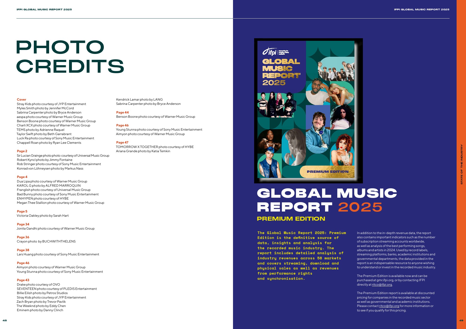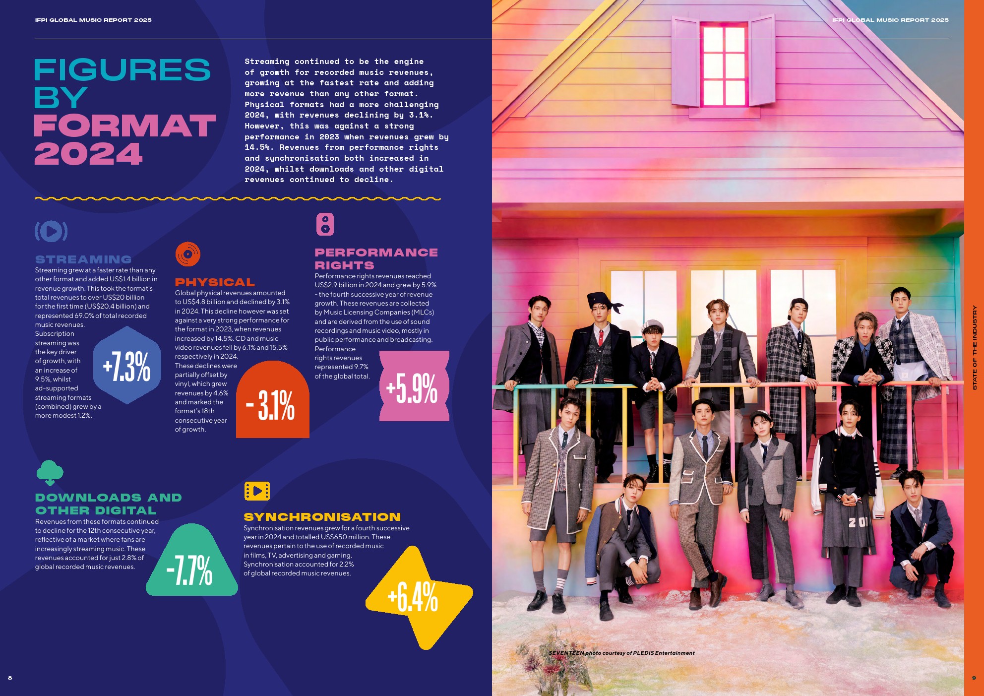 然而,流媒体并不是唯一增长的形式,黑胶唱片的收入已经连续18年增长。全球各地区的唱片收入连续第三年出现增长。但是,全球实体音乐收入为48亿美元,2024年下降3.1%。这种下降与2023年的强劲表现形成了鲜明对比,当时的收入增长了14.5%。2024年,CD和音乐视频收入分别下降了6.1%和15.5%。这些下降部分被黑胶唱片所抵消,黑胶唱片的收入增长了4.6%。