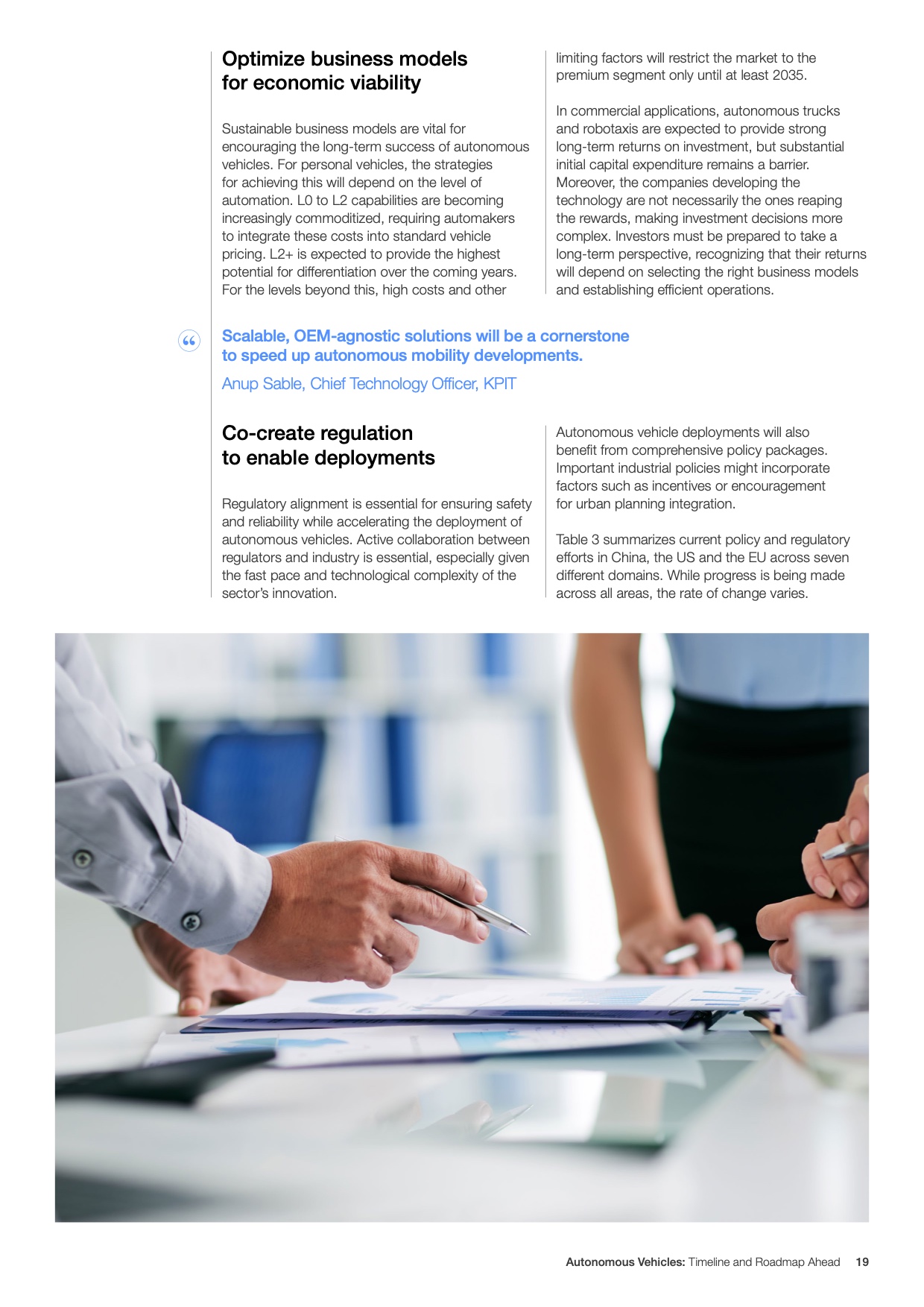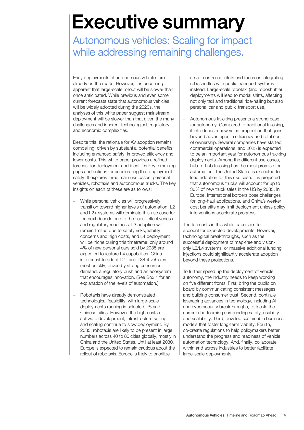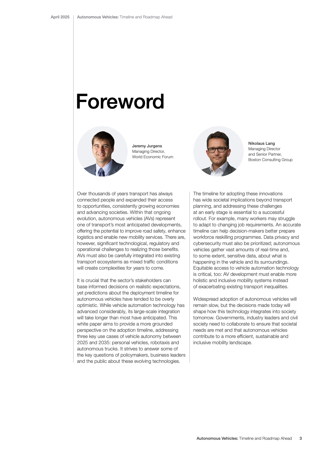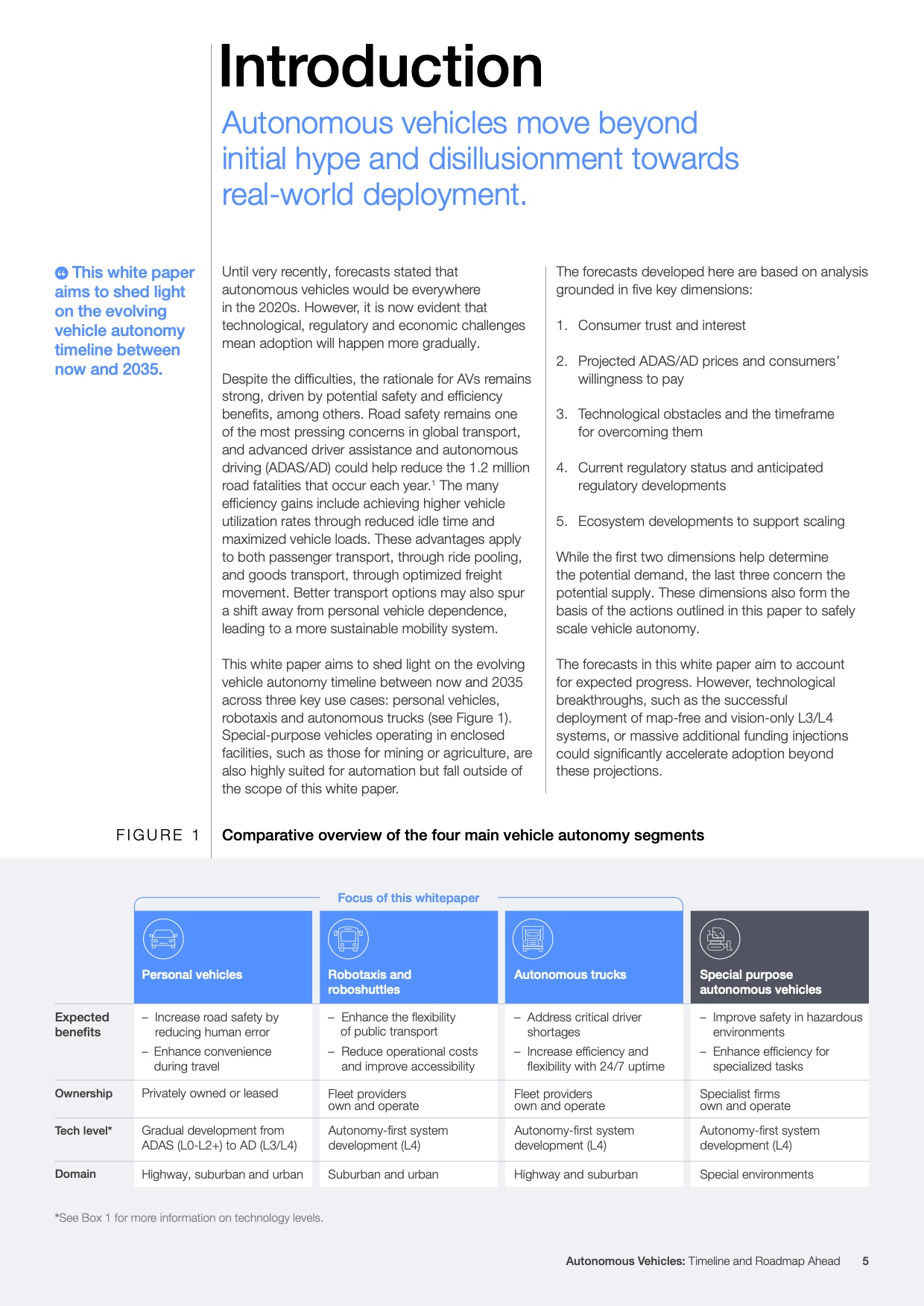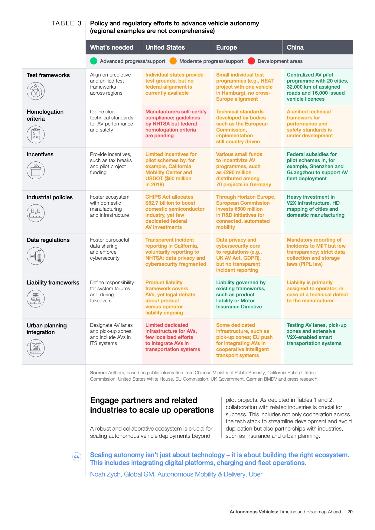 展望未来,自动驾驶技术的规模化部署将受到多重因素制约,包括消费者信任与接受度、系统预测价格与消费者支付意愿、技术障碍及其解决时限、现有监管框架与预期发展,以及支持规模化的生态系统构建。从监管机构到供应商,多方伙伴的协调合作是充分发挥自动驾驶潜力的关键。