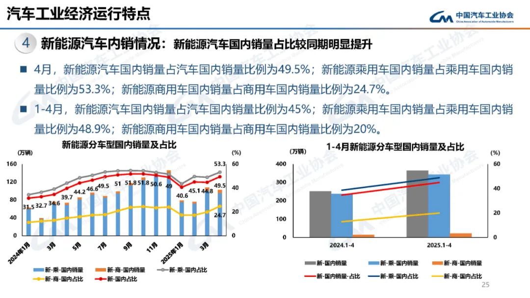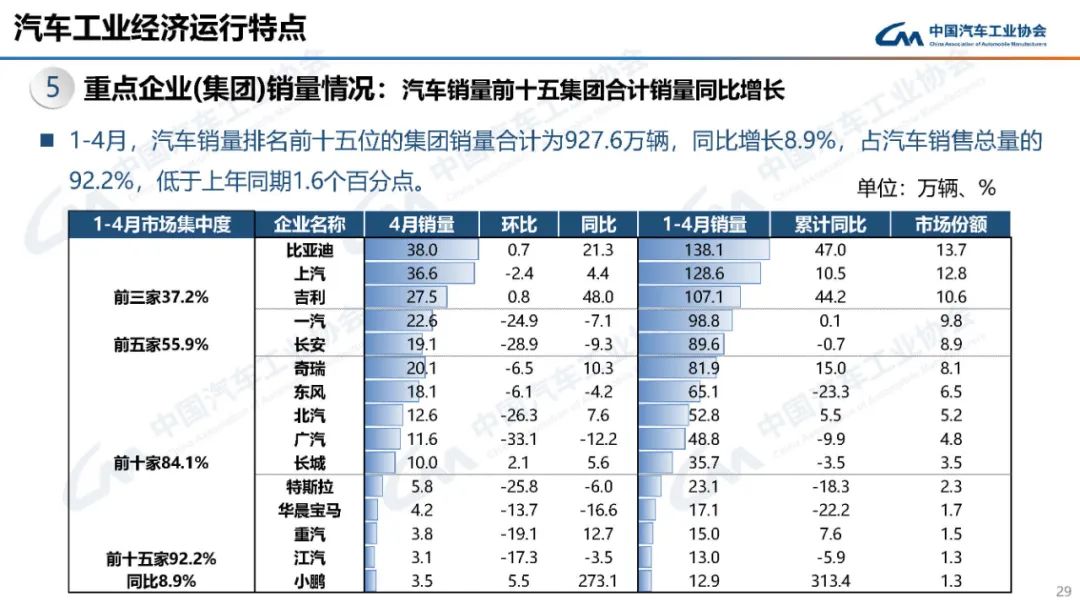 据中国汽车工业协会分析,4月,汽车市场总体表现良好,产销较去年同期实现平稳增长。其中,内需潜力加快释放,起到较好支撑作用;出口在外部环境急剧变化形势下保持稳定;新能源汽车表现活跃,产销延续快速增长态势。