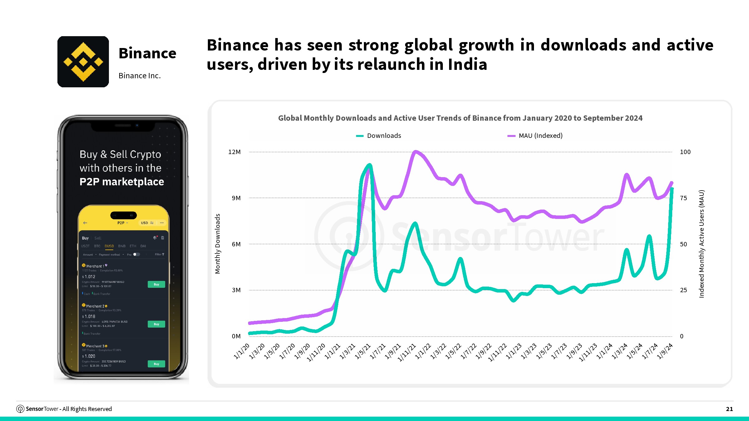 在印度重新上线的推动下,币安在下载量和活跃用户方面实现了强劲的全球增长