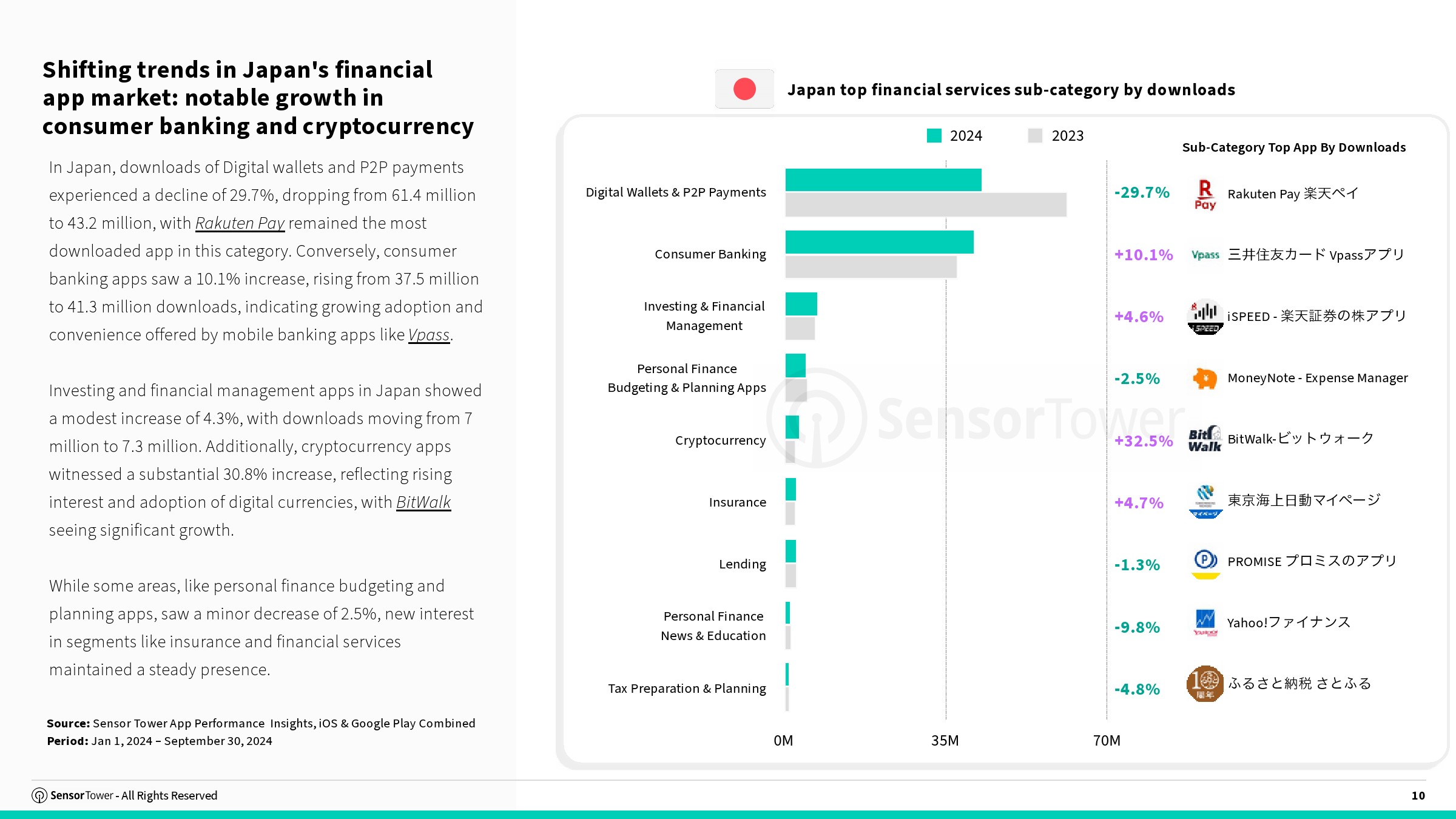 日本金融应用市场的变化趋势:消费者银行和加密货币显著增长