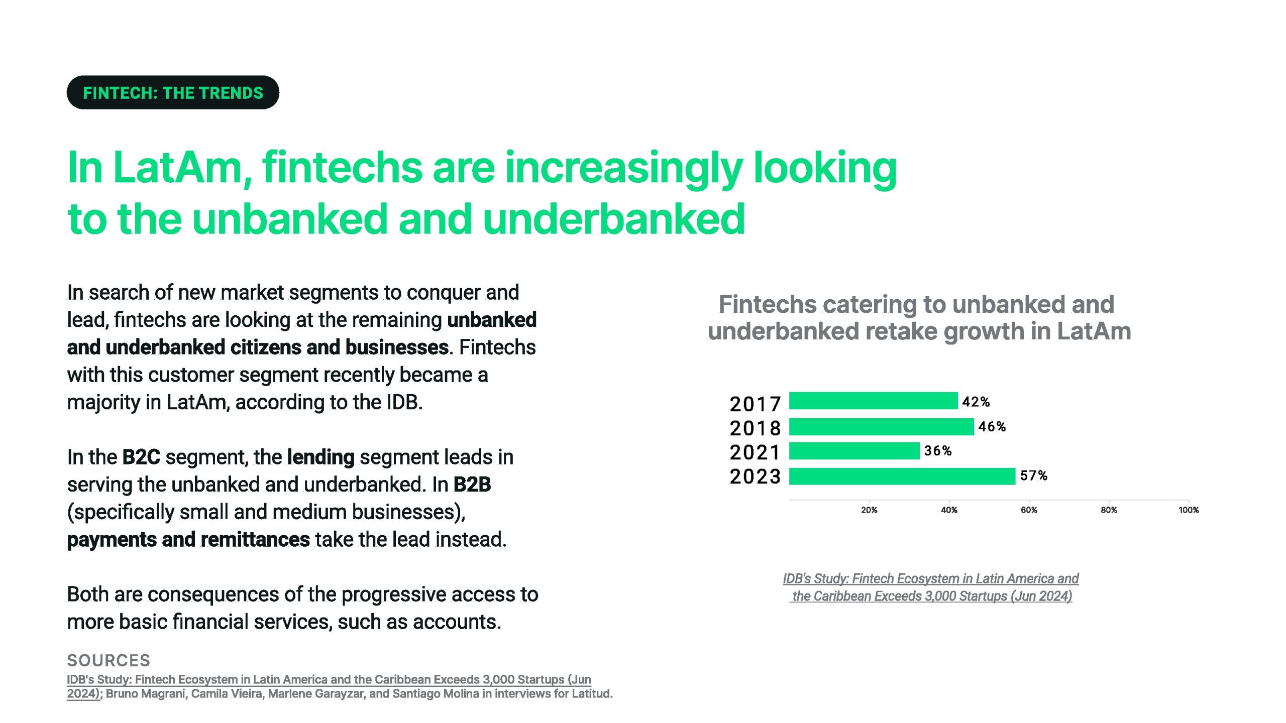 为了寻找新的分支市场来征服和领导,金融科技公司正在关注剩余的未获得银行服务和银行服务不足的公民和企业。据美洲开发银行称,拥有这一客户群的金融科技公司最近在拉丁美洲占多数。