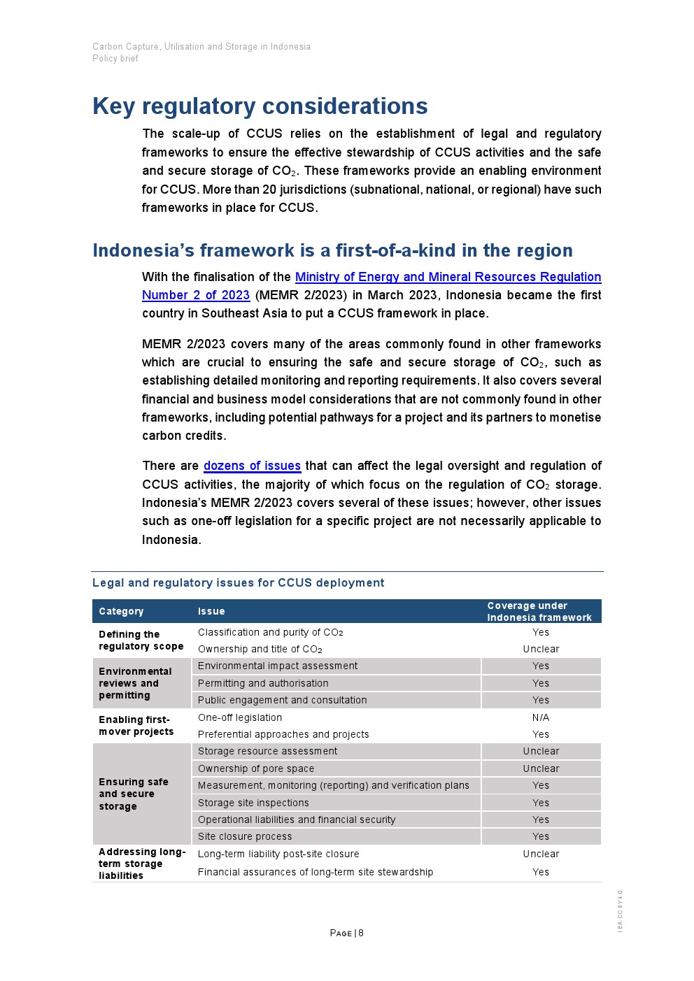 2023年3月,印尼能源和矿产资源部(MEMR)完成了部长法规MEMR 2/2023,在东南亚国家联盟(东盟)内建立了第一个CCUS监管框架。该法规为上游油气公司开展CCUS活动奠定了基础,包括开发二氧化碳储存资源。