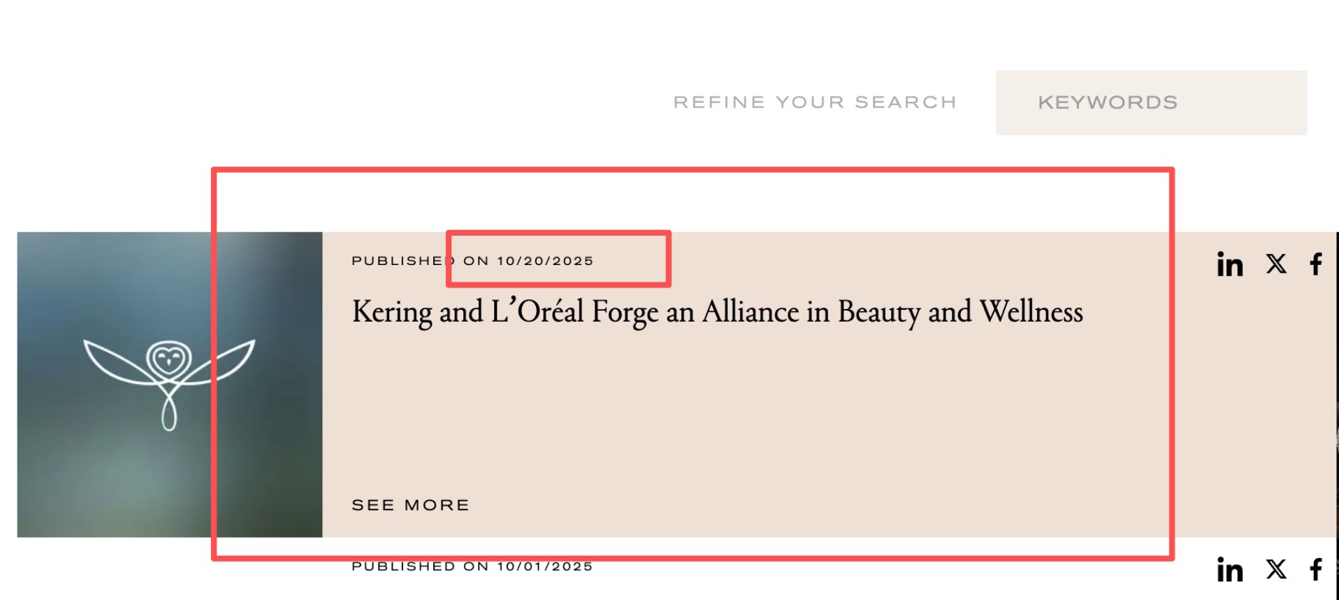 开云集团官宣与欧莱雅集团交易 图片来源:开云集团官网