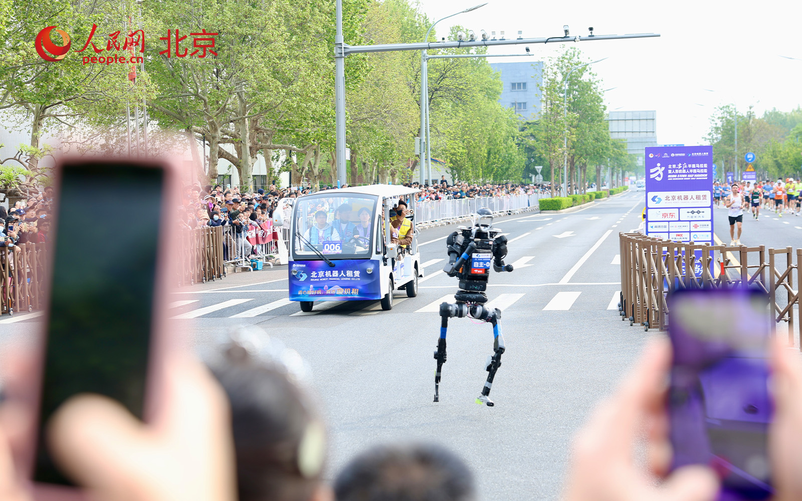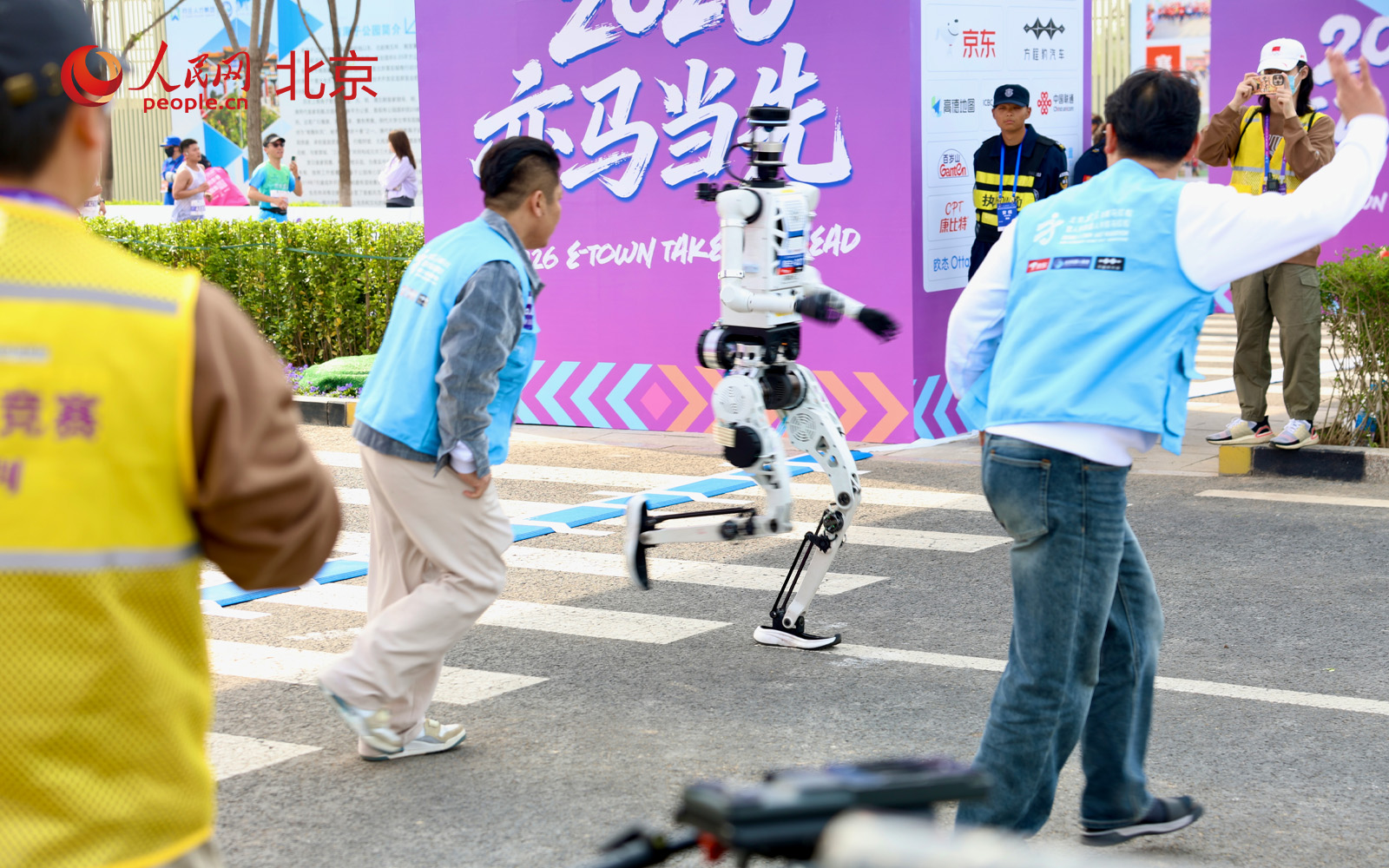 比赛当天上午7时30分正式开始,人形机器人和人类选手同时鸣枪起跑。为确保公平竞争,参赛机器人采用依次单发方式起跑,每两台之间间隔30秒。与上届相比,本届赛事规模增长近5倍。