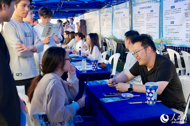 求职者与企业招聘人员深入交流。
