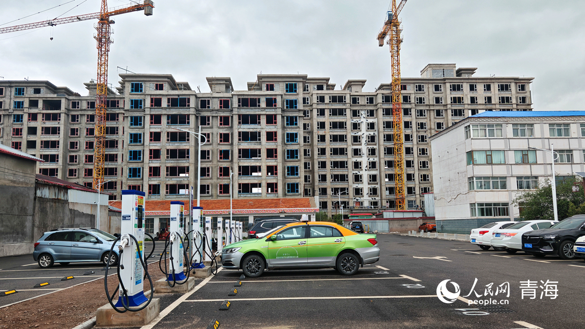 青海省果洛州玛沁县八一路停车场充电站内,新能源车正在充电。图片来自人民网(点击图片查看详情)