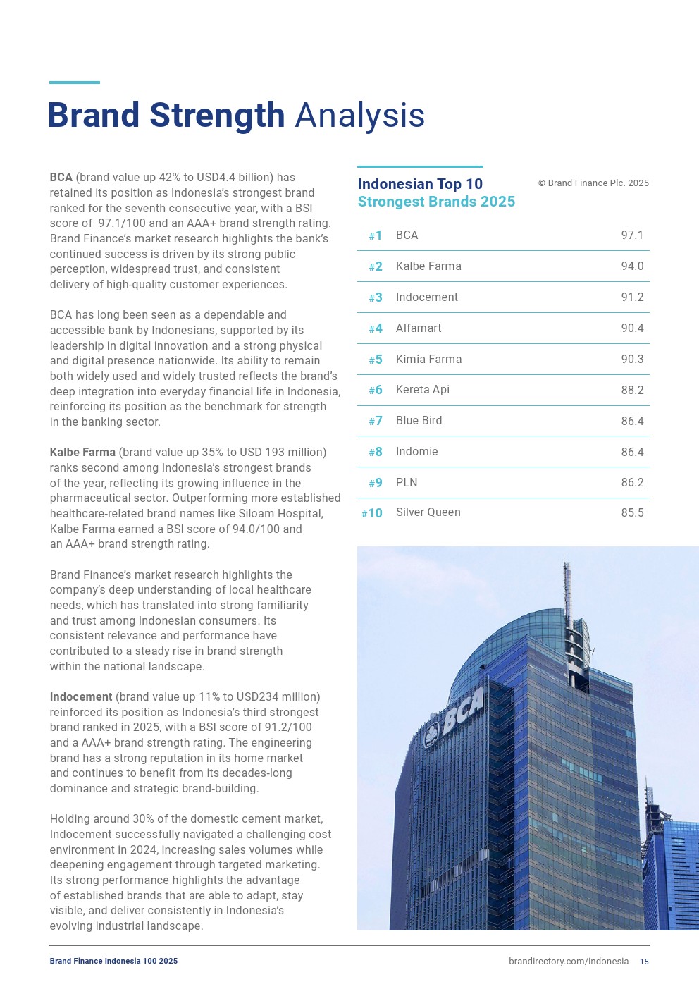 BCA今年上升两位排名第三,品牌价值增长42%,达到44亿美元。这一增长源于其稳定的财务表现、数字创新以及作为印尼领先私营银行的强势定位。