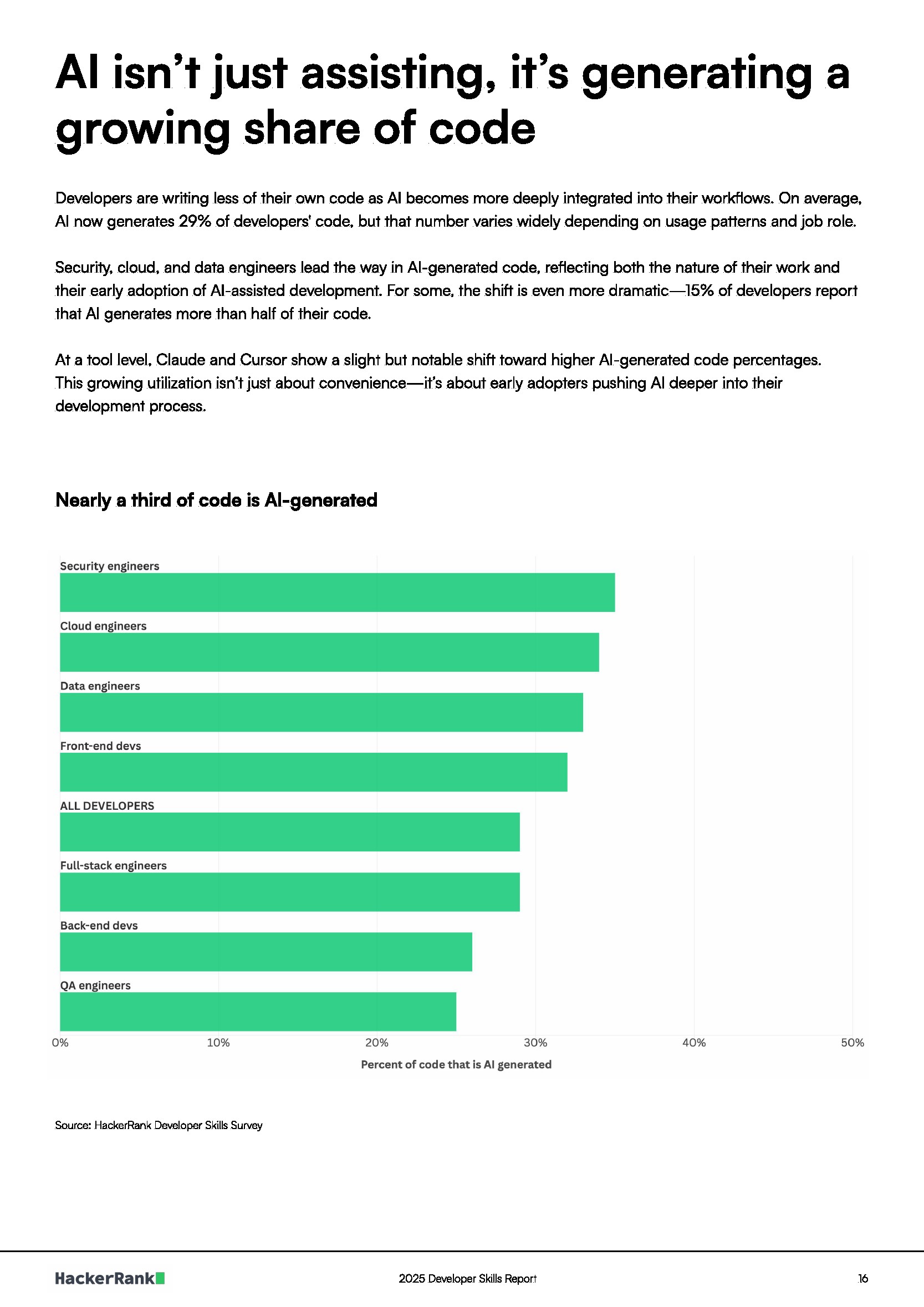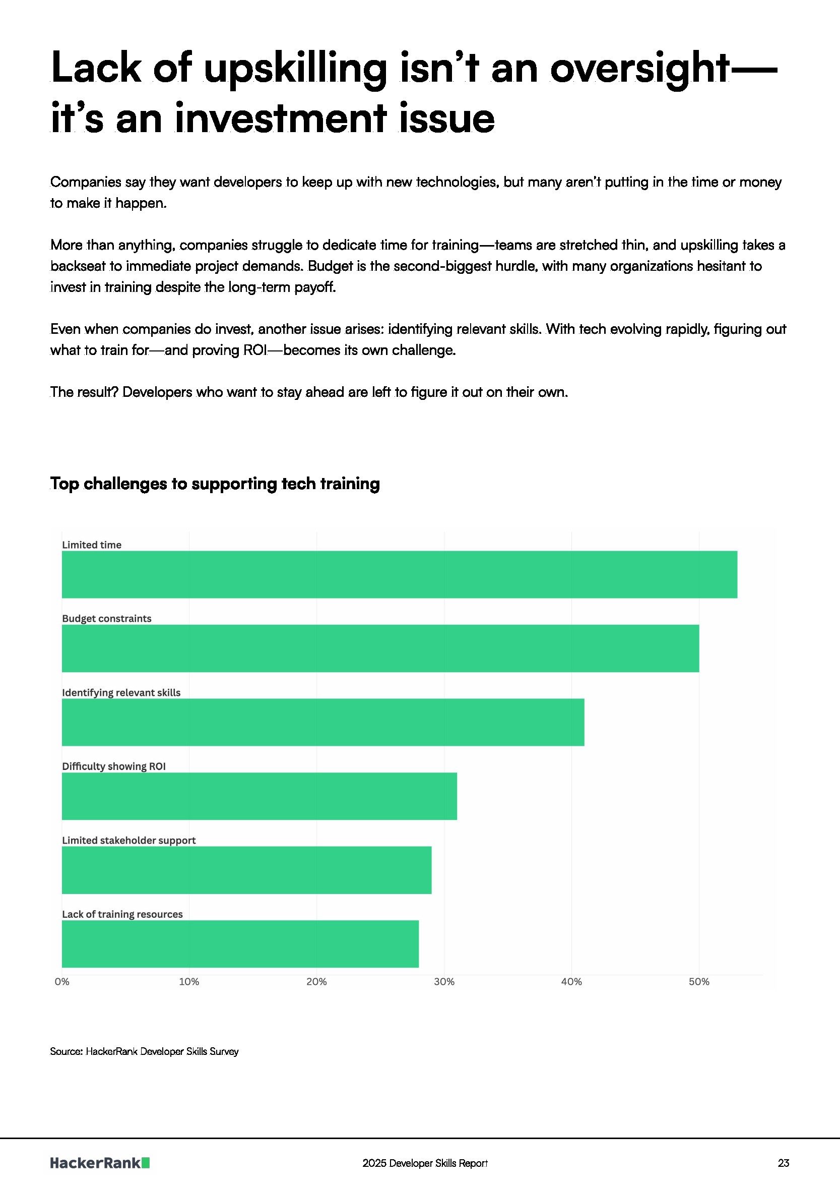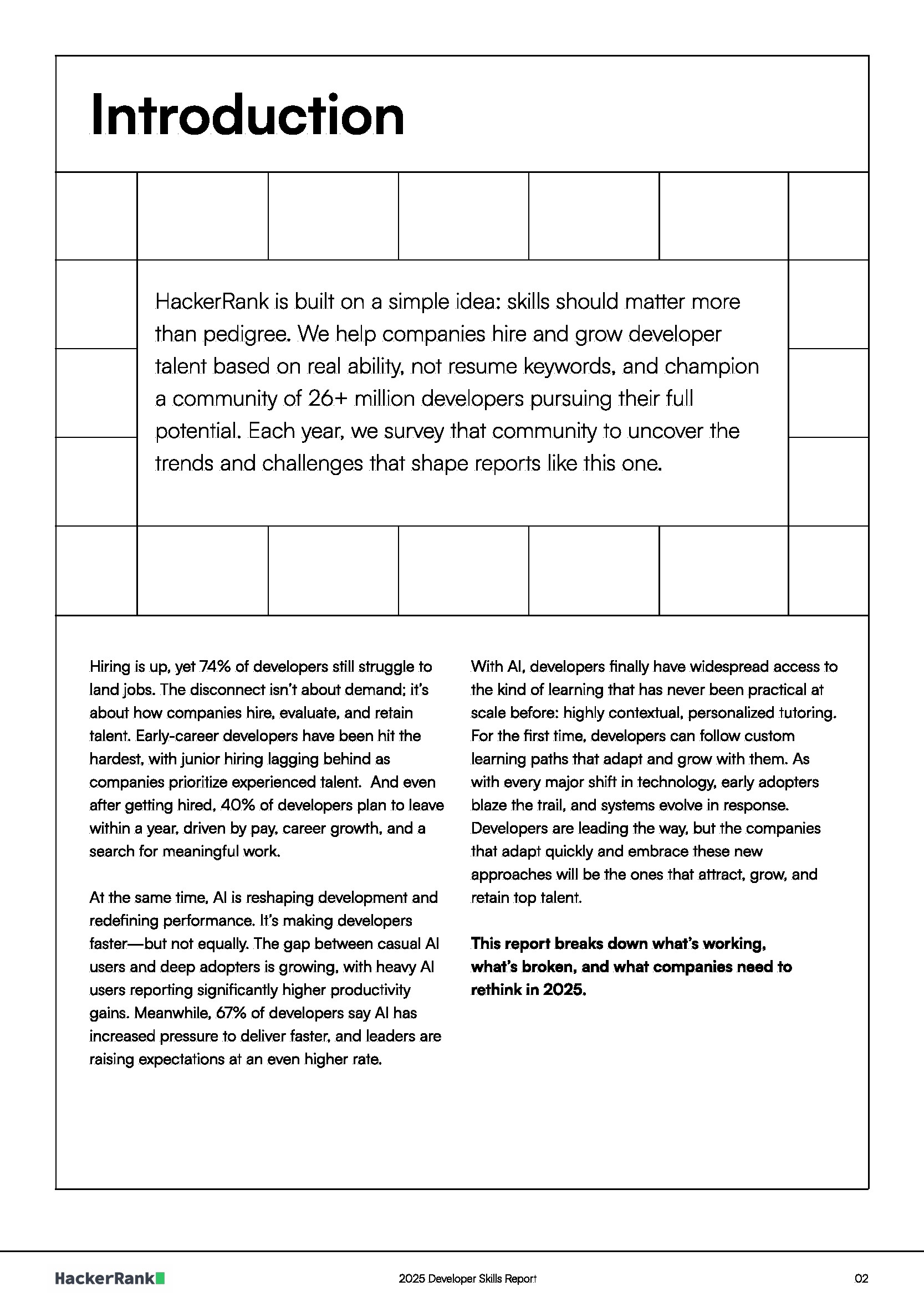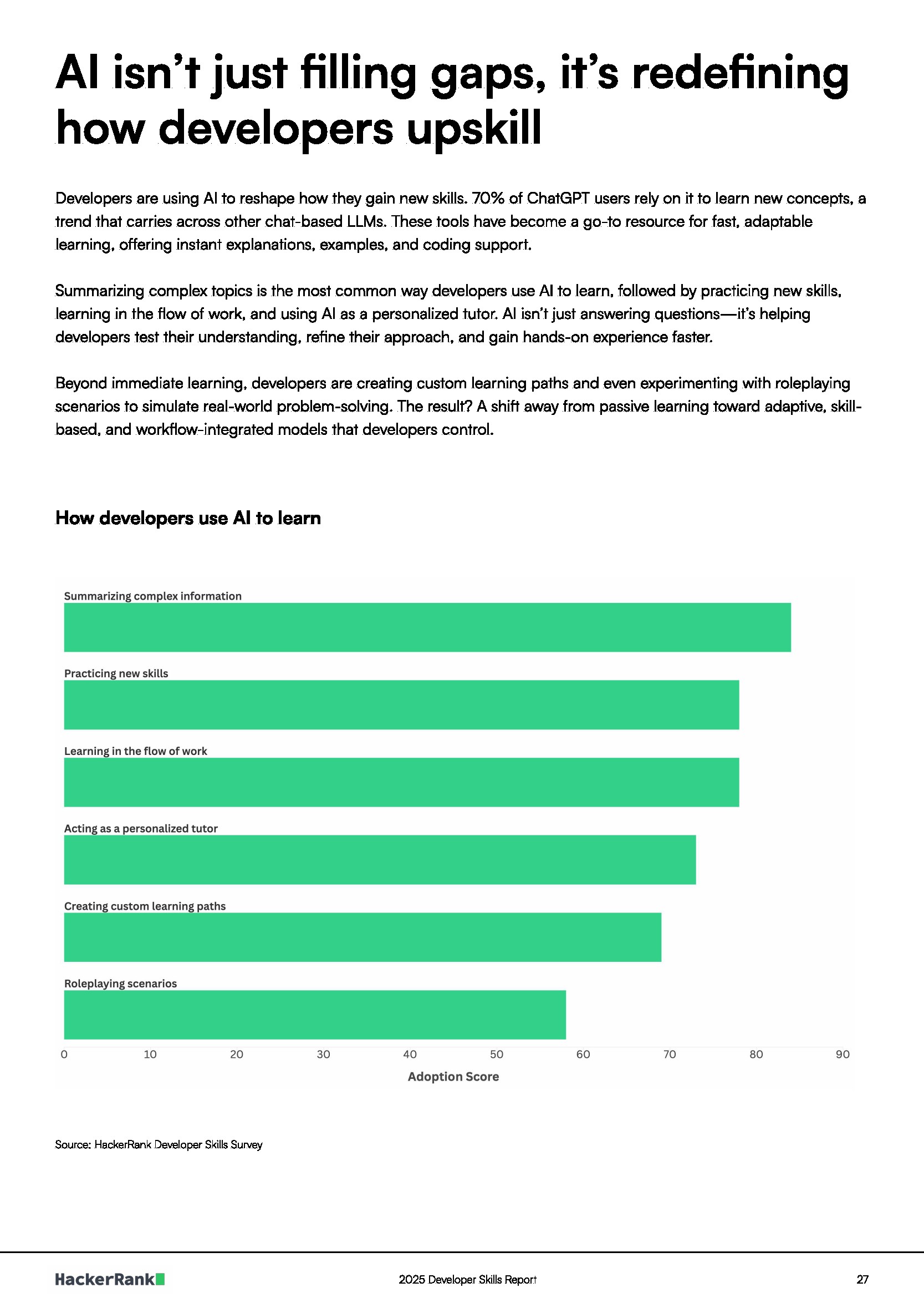 HackerRank发布了“2025年开发人员技能报告”。HackerRank 建立在一个简单的理念之上:技能应比背景更重要。其帮助公司基于真实能力而非简历关键词来招聘和发展开发人才,并支持一个拥有2600多万开发者的社区追求他们的全部潜力。