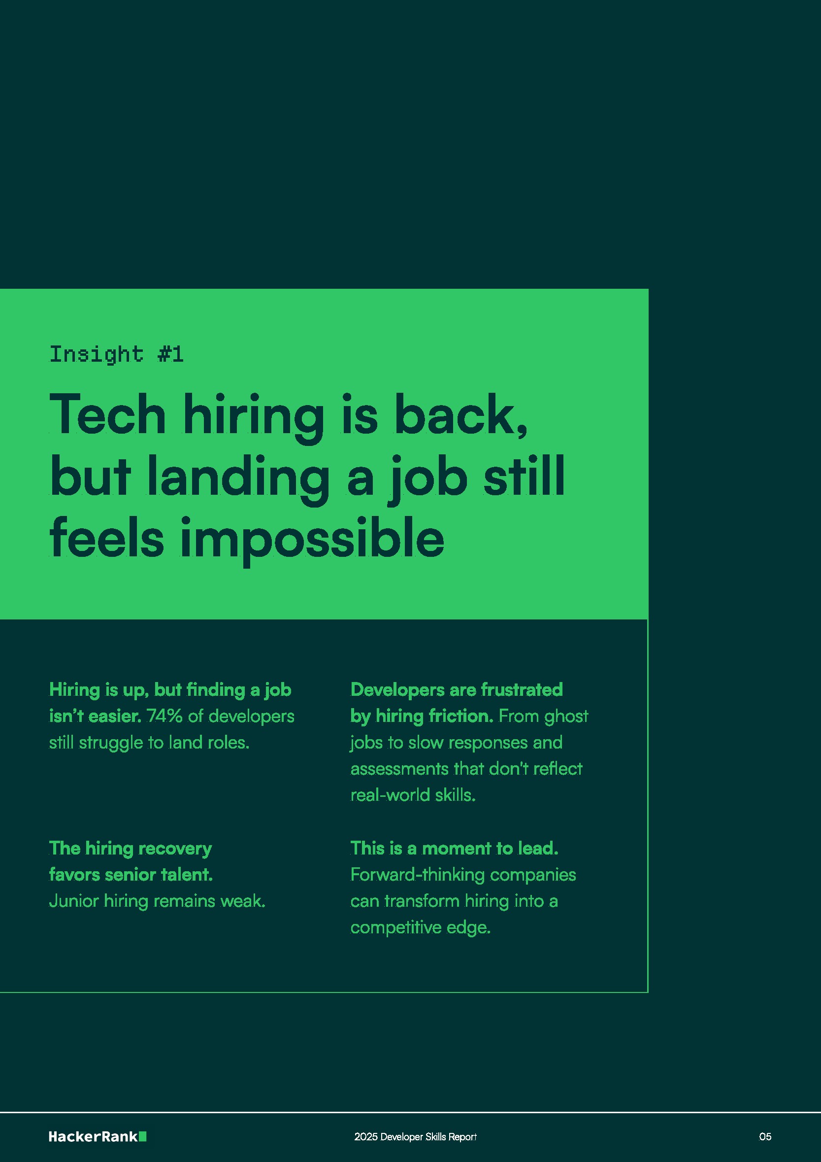 招聘在增加,但74%的开发者仍然难以找到工作。这种脱节不在于需求;而在于公司如何招聘、评估和留住人才。