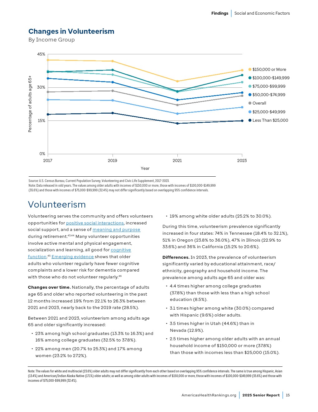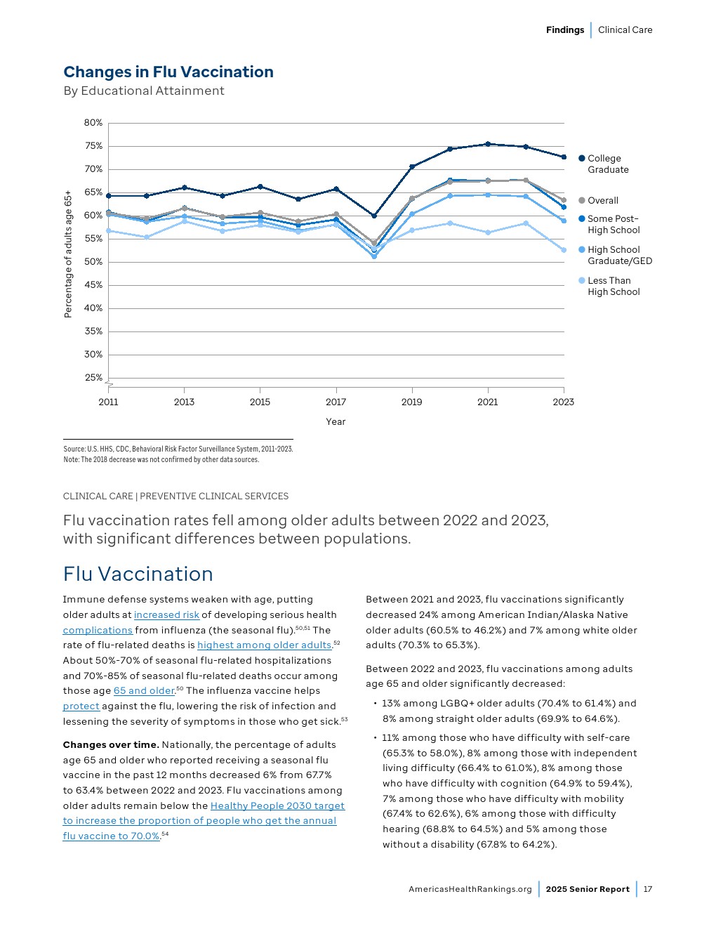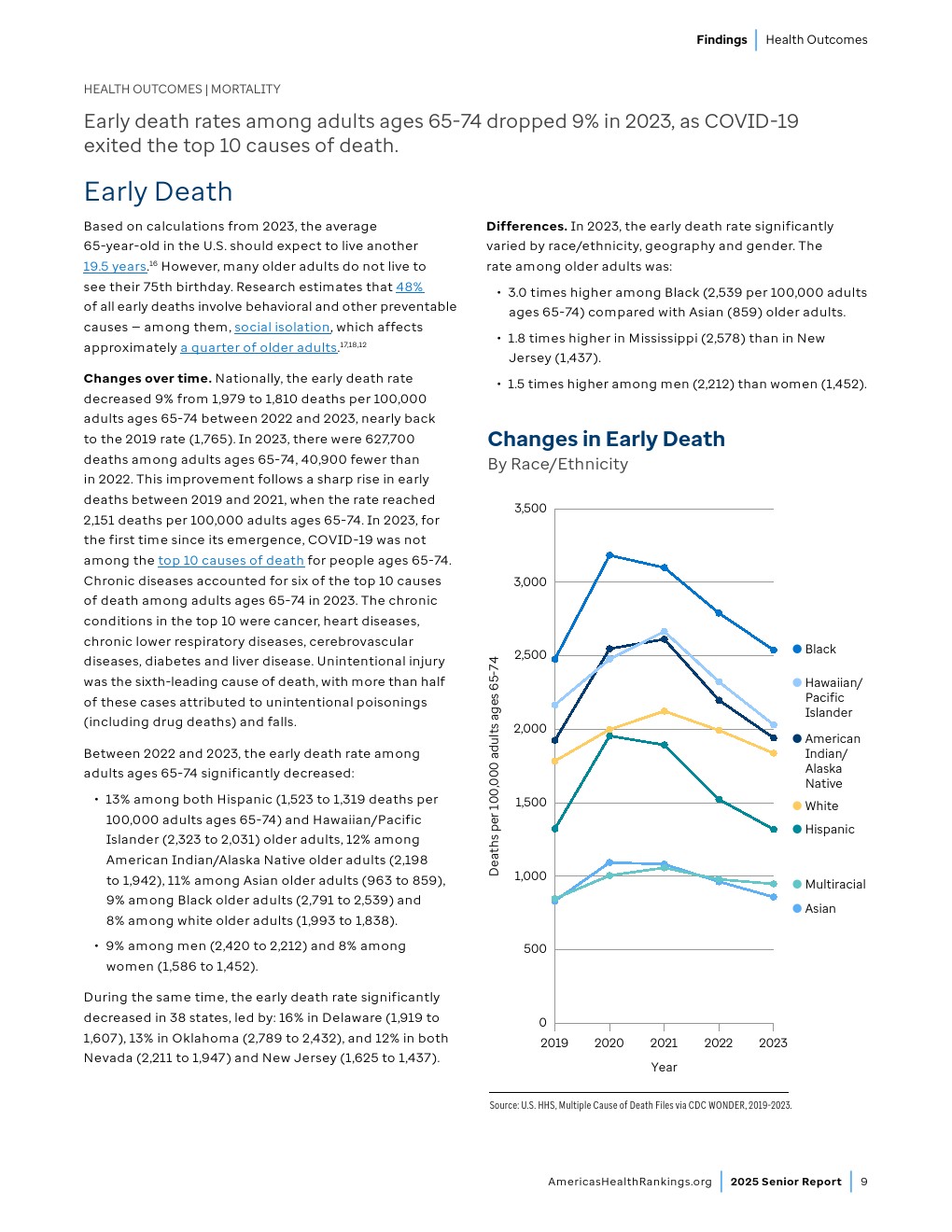 65-74岁成年人的过早死亡率已接近2019年水平,社会支持和参与度指标正在改善,老年病临床医生数量也在增加。尽管取得这些进展,药物致死和自杀案例仍达到“老年报告”历史最高水平,社会经济挑战持续存在。