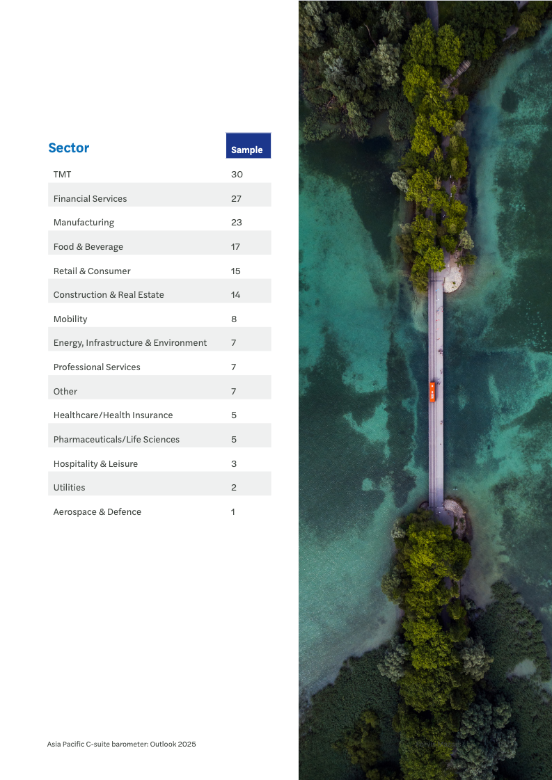 宏观经济的不确定性是笼罩在亚太商界上空最主要的阴云,47%的受访者将其列为首要关切。紧随其后的是日益激烈的市场竞争(38%)以及对供应链韧性的担忧(33%),后者在亚太地区的受关注程度显著高于全球其他地区。面对这些挑战,高管们的信心有所下滑,表示“非常有信心”应对的比例从34%降至30%,反映出经济逆风下的普遍压力。