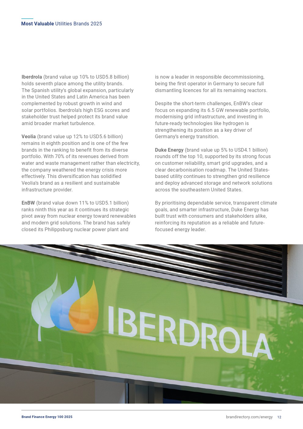西班牙伊维尔德罗拉(Iberdrola,品牌价值增长10%,达到58亿美元)位居第七。