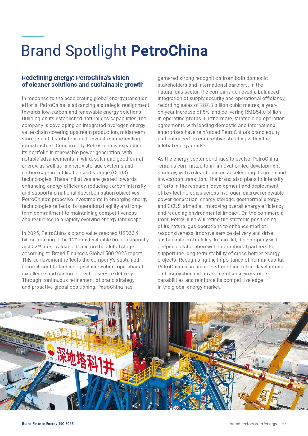 两家中国品牌——中国石油(品牌价值增长17%,达到333亿美元)和中国石化(品牌价值增长5%,达到298亿美元)保持全球顶尖品牌排名。