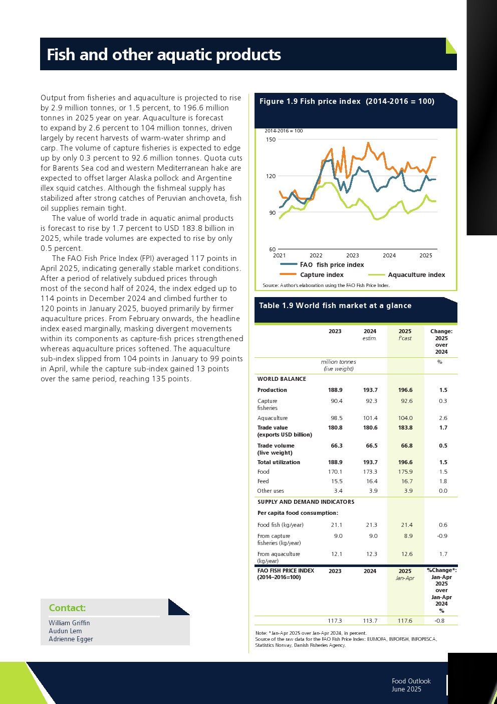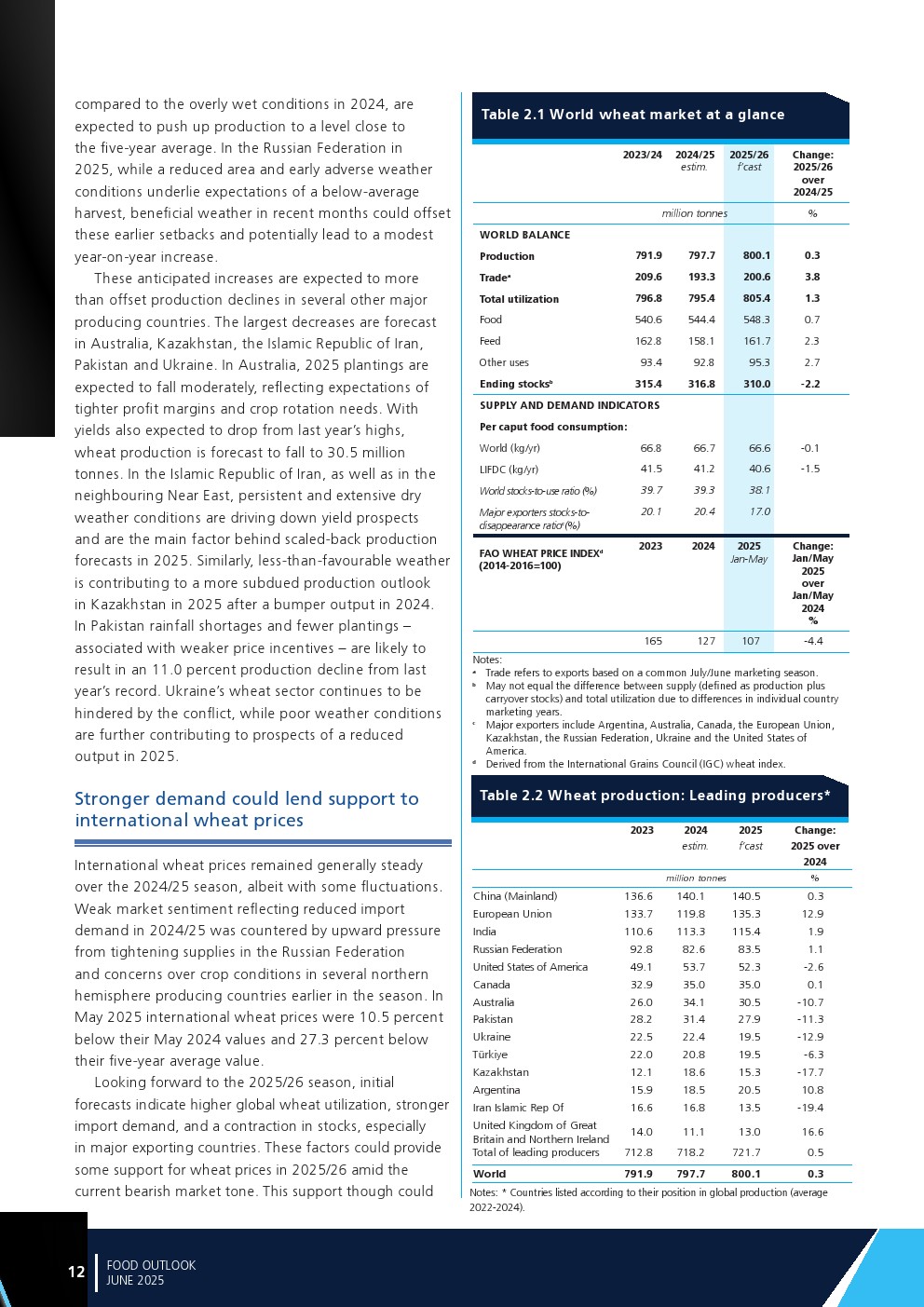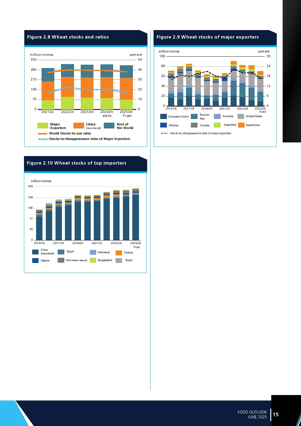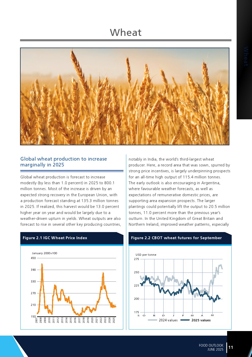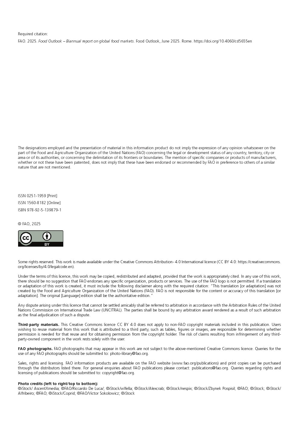 联合国粮农组织发布了“2025年年中食品展望报告”。最新评估显示,除糖类外,所有食品商品市场生产前景相对乐观,预计都将增产。但这一增长对库存恢复的影响将因供需间的微妙平衡而各异。全球食品商品生产仍易受天气条件影响。此外,冲突与地缘政治紧张局势升级、贸易政策及相关措施的不确定性、以及经济挫折都可能对贸易前景产生负面影响。