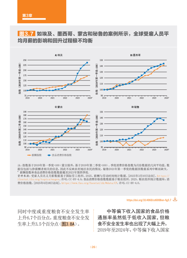尽管食品价格2024年有所上涨,但世界上无力负担健康膳食的人数从2019年的27.6亿降至2024年的26亿。然而,非洲无力负担健康膳食的人数同期从8.64亿升至超过10亿(从64%升至66.6%)。同期低收入国家的人数从2019年的4.64亿升至2024年的5.45亿(占人口比例为72%),中等偏下收入国家(不包括印度)从7.91亿升至8.69亿(占人口比例为52%)。