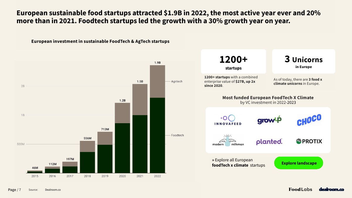 欧洲可持续食品初创公司在2022年吸引了19亿美元的投资,这是有史以来最活跃的一年,比2021年增长了20%。食品科技初创公司以30%的同比增长引领这一市场。