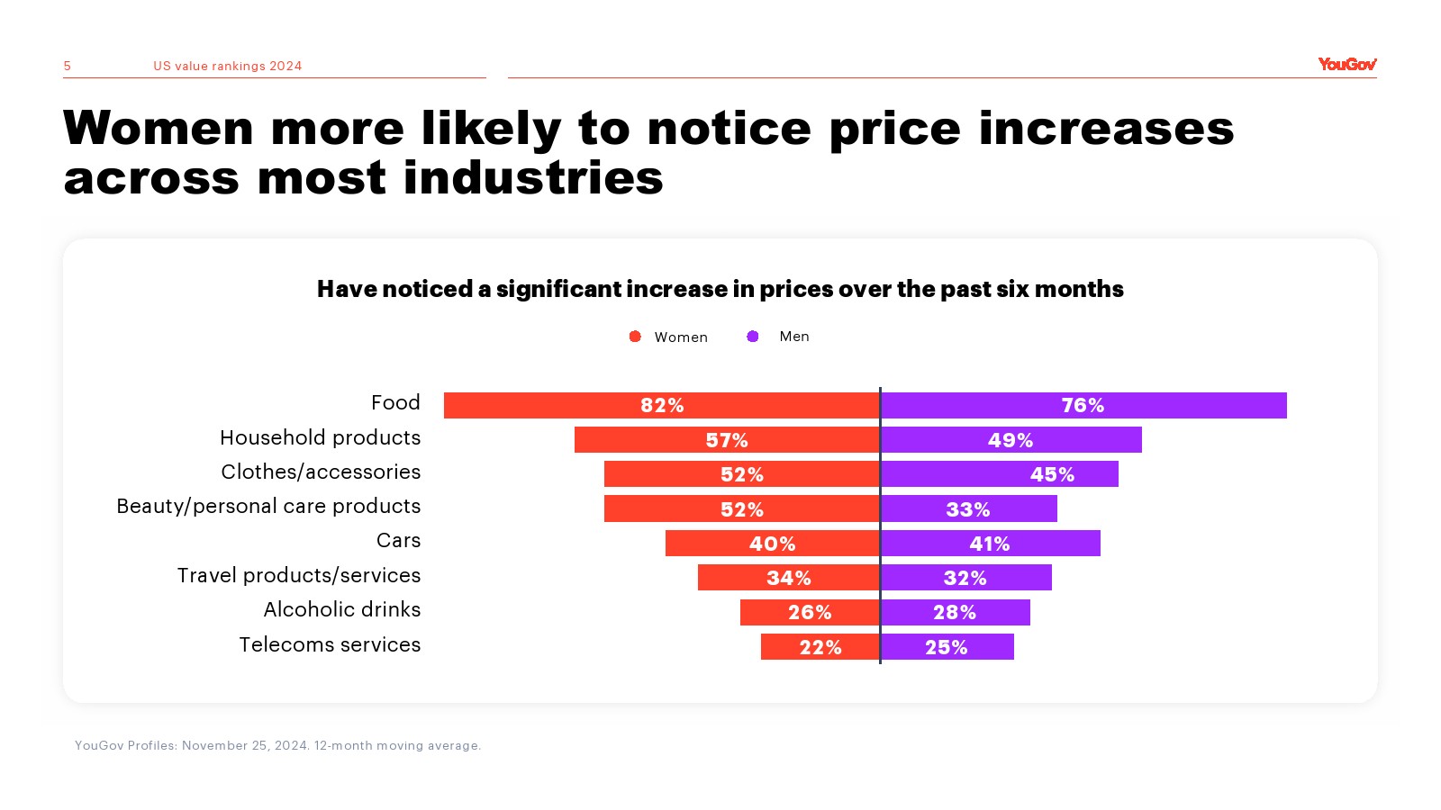 女性更容易注意到大多数行业的价格上涨。