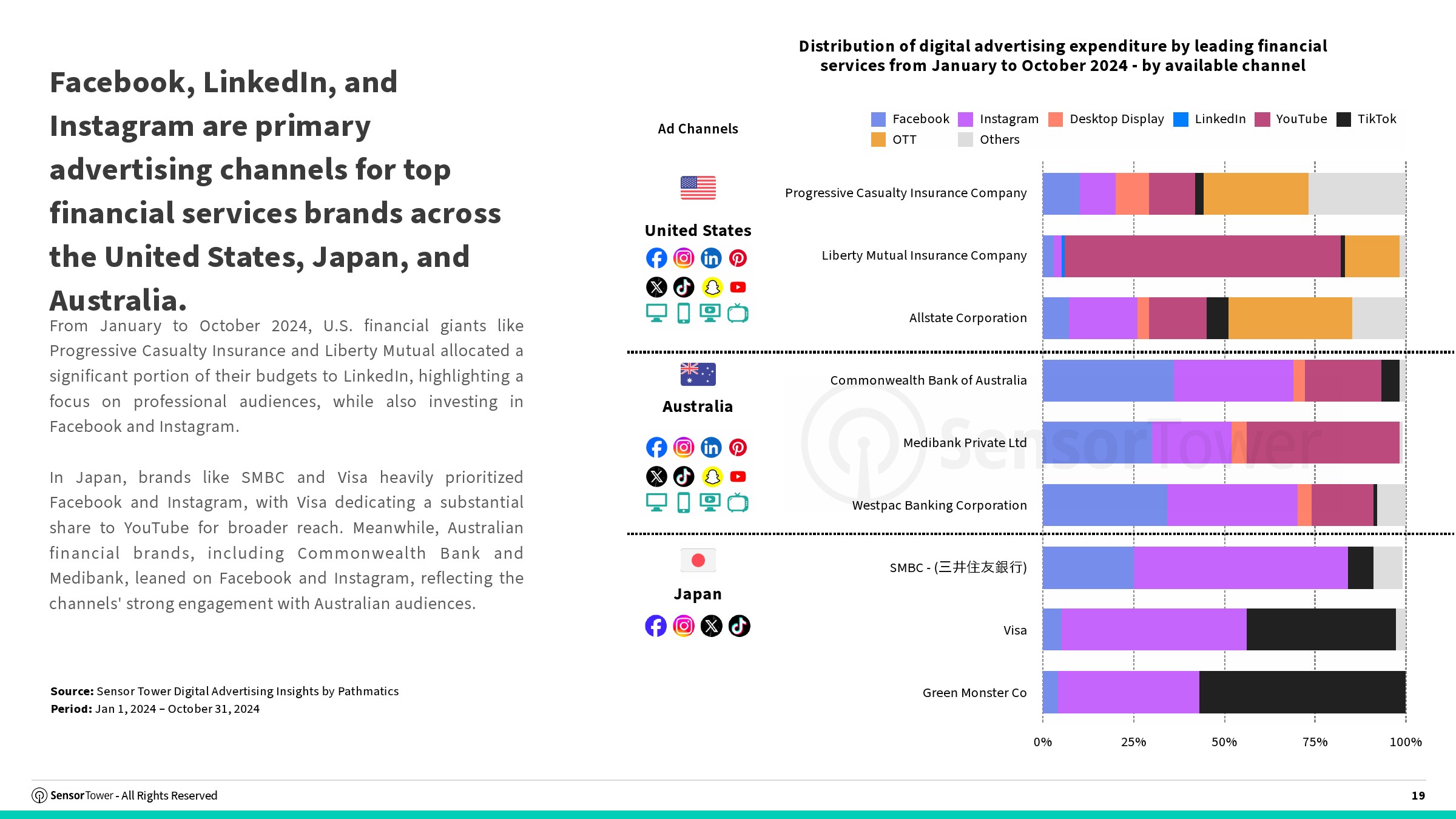 在许多关键市场,金融服务品牌的数字广告支出和展现量都在逐年上升,并在2024年达到新的高度