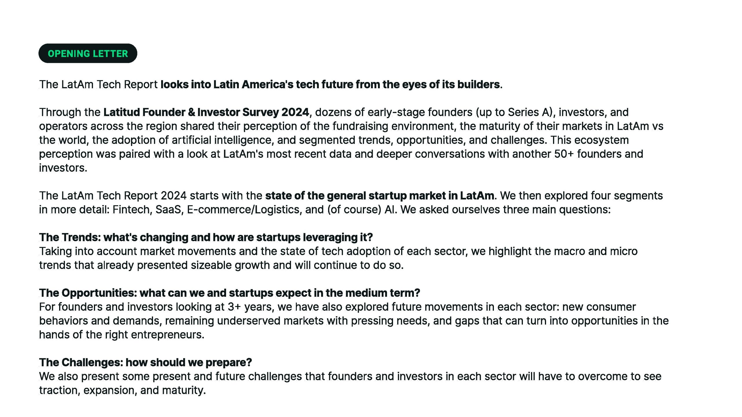 Latitud Ventures发布了“2024年拉丁美洲科技报告”。即使拉丁美洲和加勒比地区现在拥有3000多家金融科技公司,工作还远远没有完成。该分支市场预计在2022年至2028年之间的复合年增长率为27%,这将导致拉丁美洲在全球金融科技中的收入份额增加。